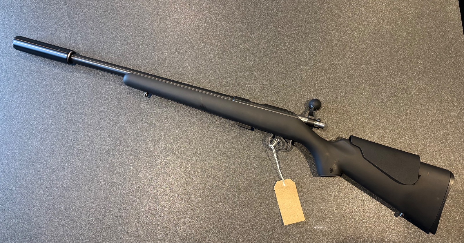 CZ B/A rifle 16” barrel Black synthetic finish Varmint barrel Sak sound mod (1/2x20) X1 5rd mag X2 10rd mag Additional cheek piece comes on gun Very clean rimfire for someone starting off on the field or on range