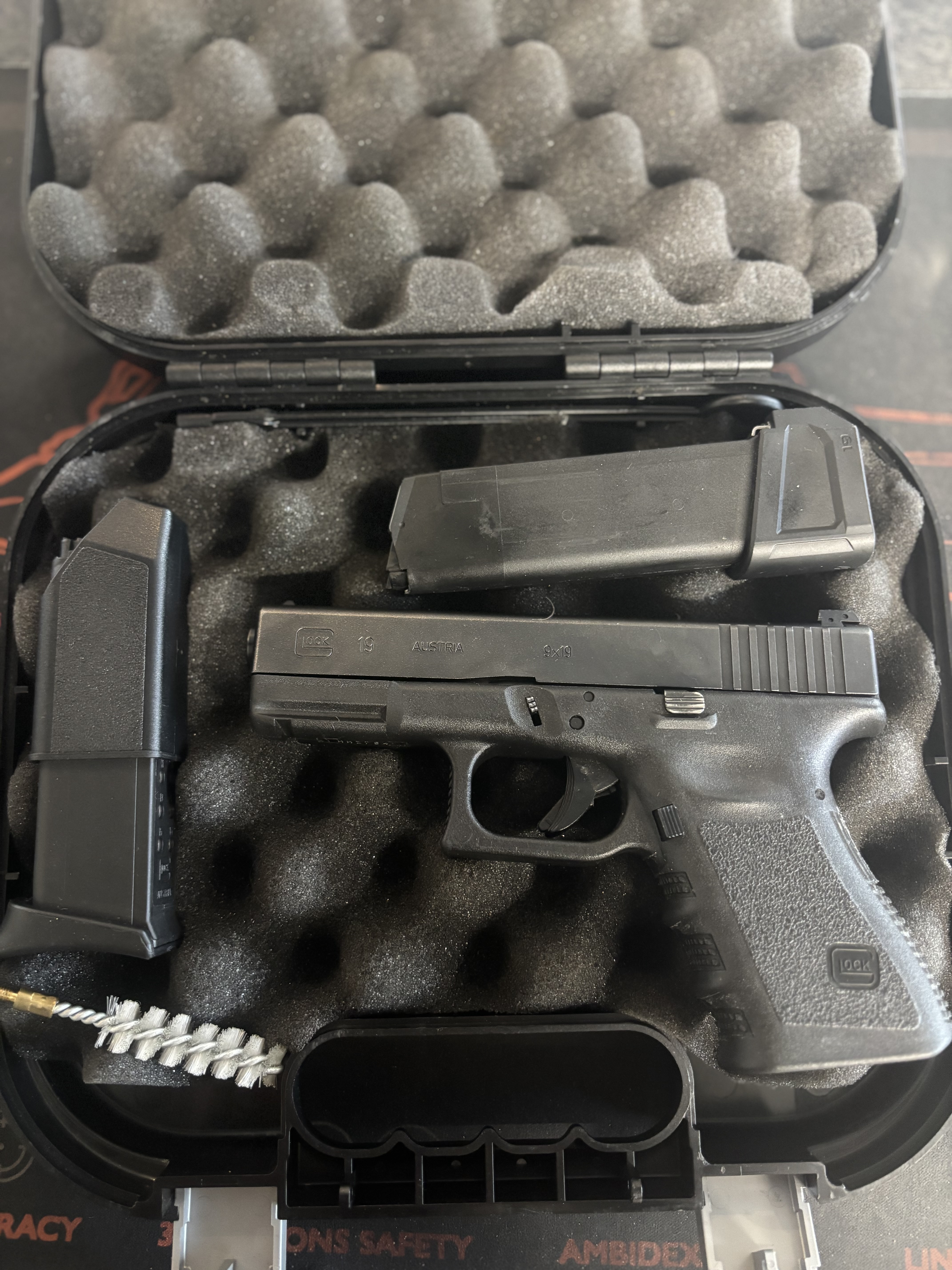 Glock 19 Gen 3 Non mos X2 mags (one extended) Assist loader Glock case Selling for a customer so payment preferably to be in full