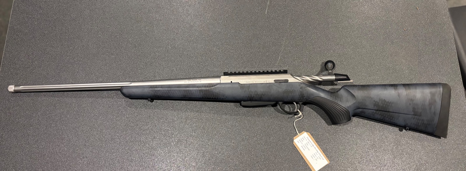 Tikka T3X polyfade Stainless steel barrel 20” barrel Britannia rail 5rd plastic mag x1 5/8-24 thread comes with thread protector Fluted barrel and bolt Digital camo finish Right handed Perfect second hand rifle ideal for anyone for vermin control or range use, has seen very little use and guns in immaculate condition