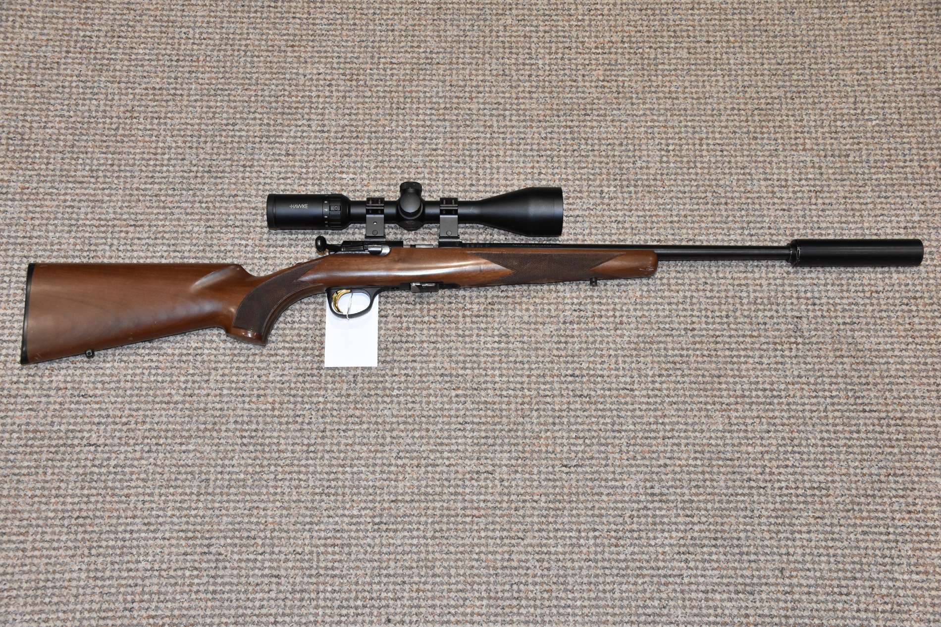 .22LR Browning T-Bolt Straight pull rifle 16" Barrel 10 Round detachable magazine Hawke Vantage 4-12x50 scope A-Tec Wave sound moderator Wooden stock Sling studs £395 including scope and moderator Finance Available
