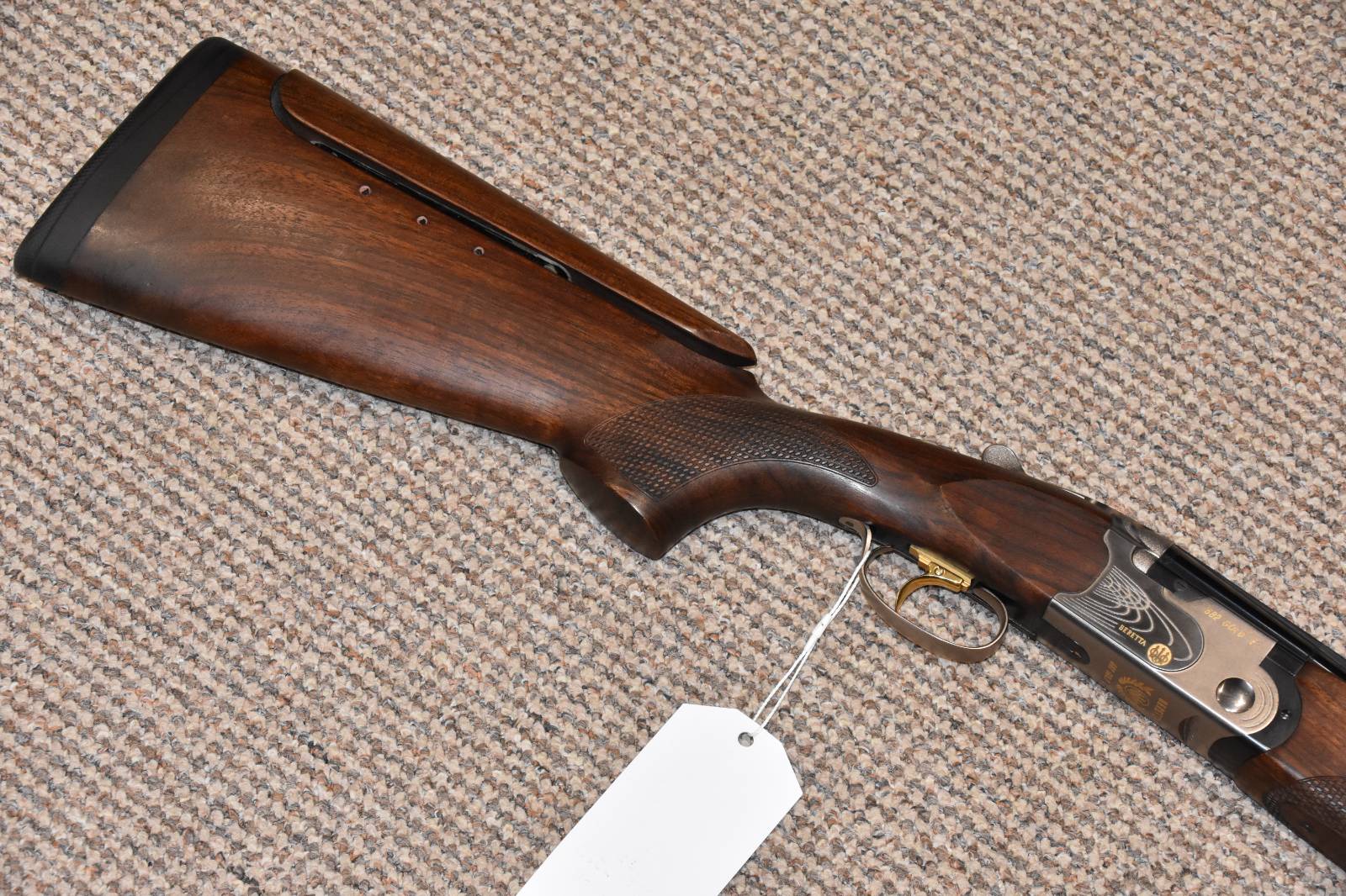 12 Gauge Beretta 682 Gold E Adjustable Over and under shotgun 14.75" Length of pull 32" Sporting Barrels Multi choke - 5 Extended Optima chokes Ejectors Single selective trigger Adjustable trigger position Adjustable comb 3" Proofed chambers Proofed in the year 2008 8 Lbs 3 Oz in weight Comes in hard Beretta carrying case with spare butt pad and spare parts box intact £1695 Finance available.