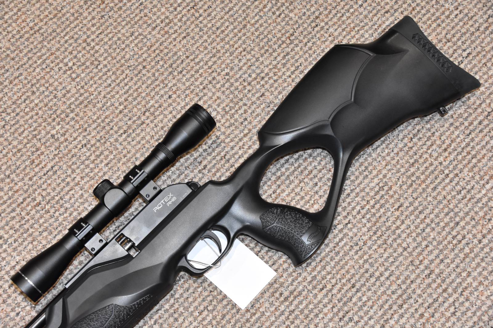 .22 Walther Rotex RM8 Pre charged air rifle 500mm Barrel Walther 4x32 scope Threaded for moderator Muzzle brake Max working pressure 232 BAR Tested @ 22ft/lbs of power Synthetic Thumbhole stock Lower picatinny rail Detachable magazine £350 including scope Finance Available