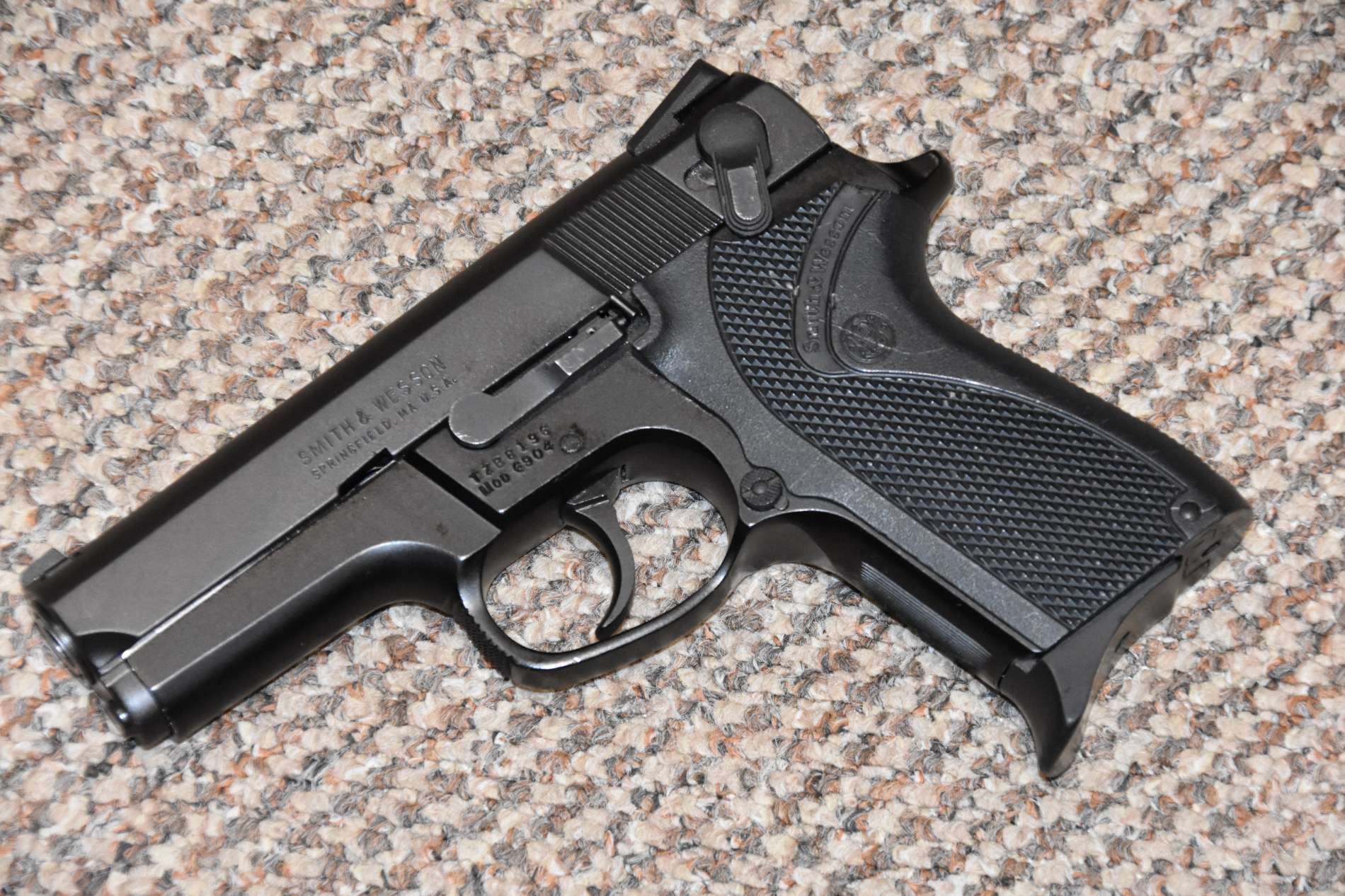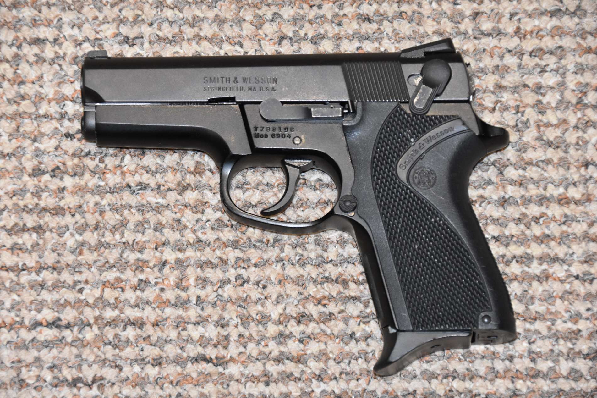 9mm Smith & Wesson Model 6904 Semi automatic pistol 3.5" Barrel 3 Detachable magazines (1 x 12rd, 2 x 20rd) Single Action/Double Action Ambidextrous safety Aluminium alloy frame Alloy steel slide Stainless barrel Comes in hard carry case £350 Finance Available