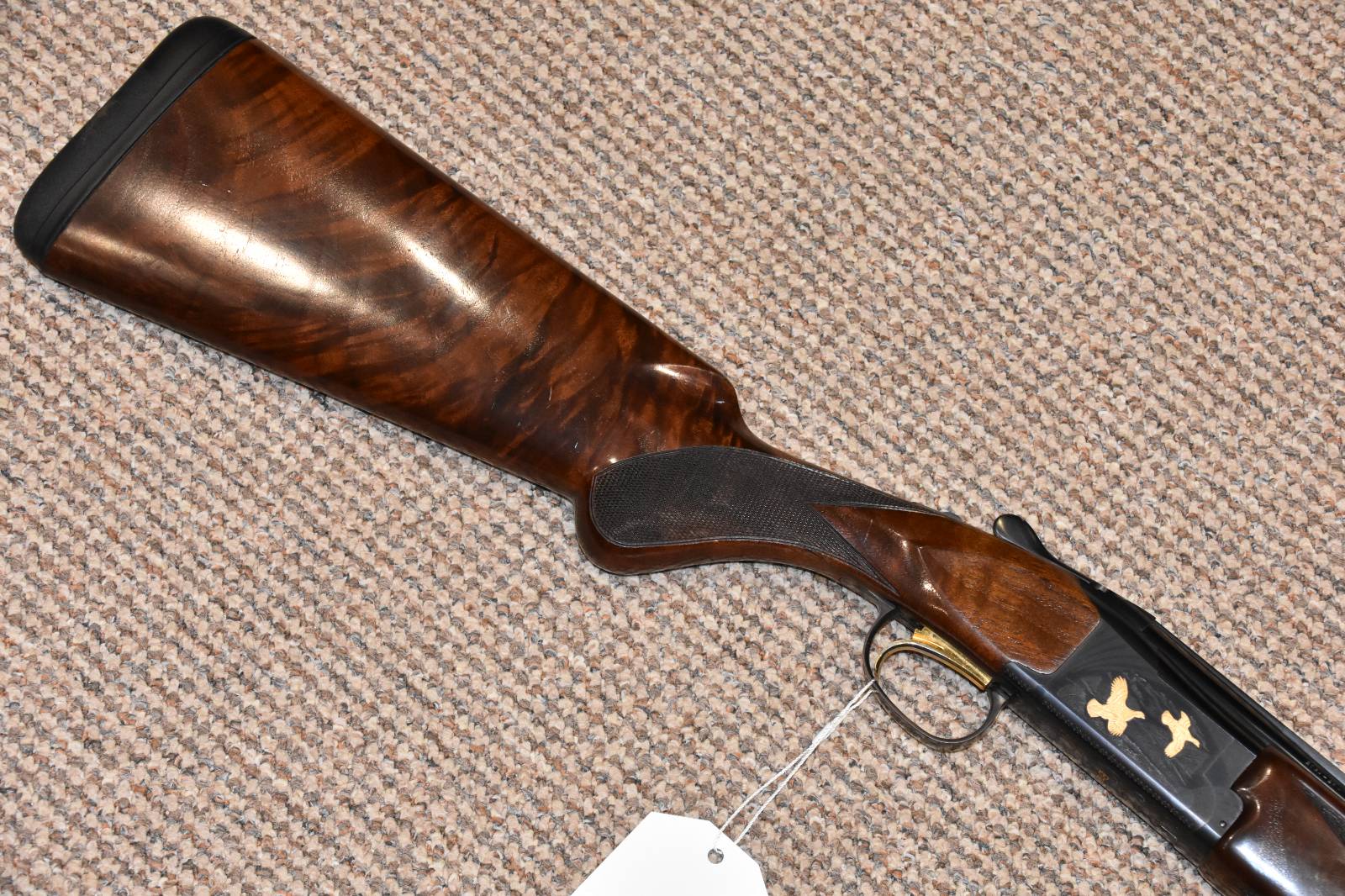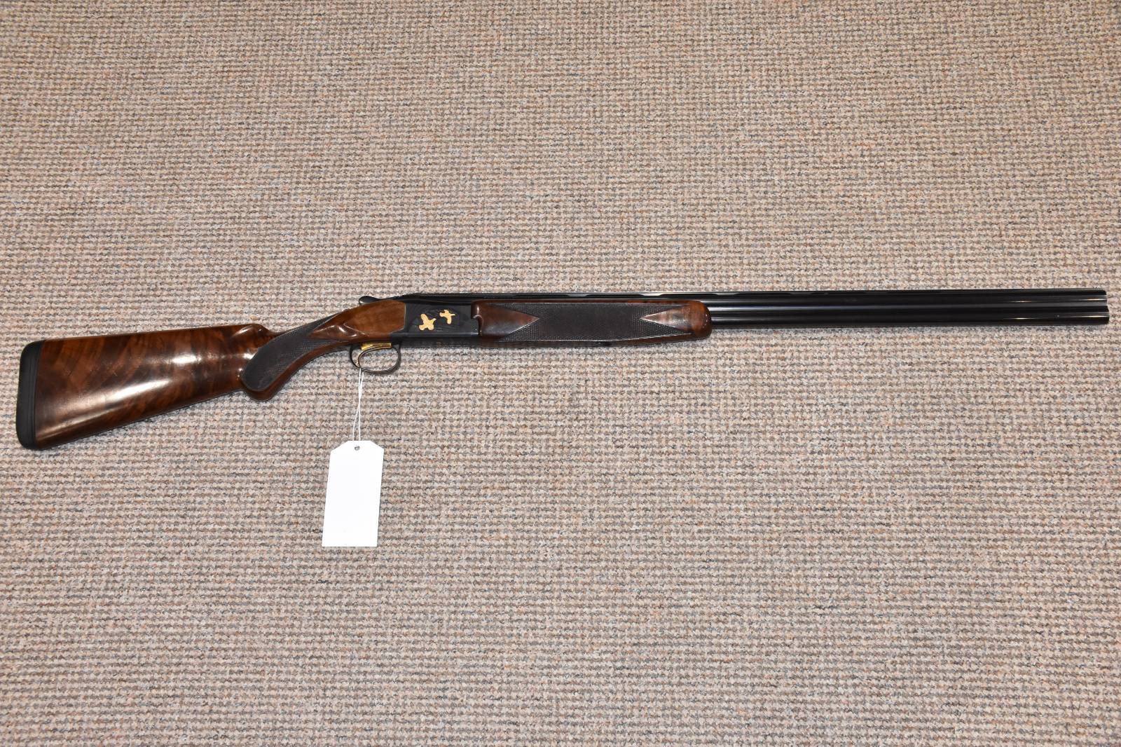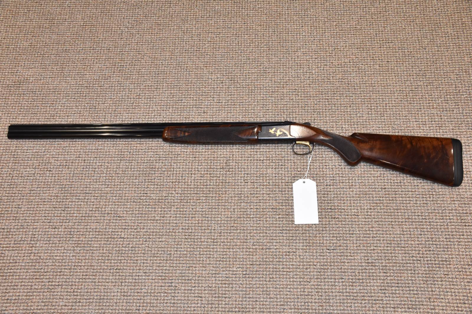 20 Gauge Browning B725 Hunter G1 Black Gold Over and under shotgun 30" Barrels 15" Length of pull Multichoke - 5 Chokes Ejectors Single selective trigger Rubber pad Prince of Wales grip Black action with gold bird inlays Steel proofed Chambered in 3" Proofed in the year 2015 Comes in Browning hard carry case £1495 Finance Available