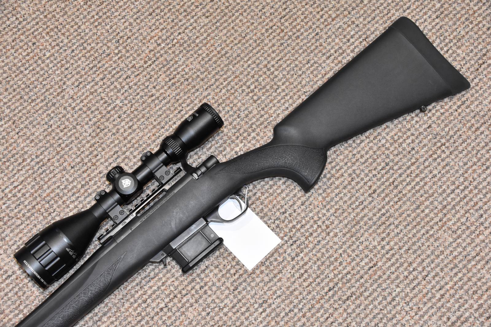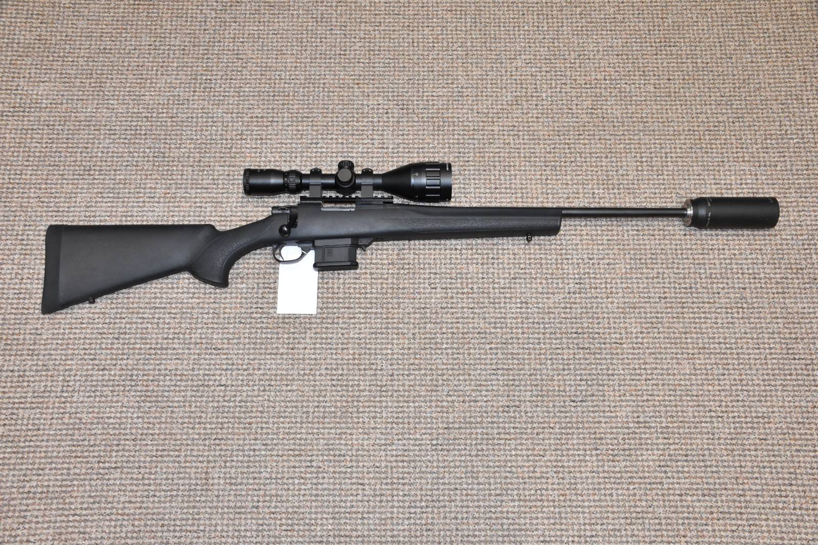 .204 Howa 1500 Mini Action Bolt action rifle 20" Barrel 5 Round detachable magazine Nikkostirling 3-9x50 illuminated scope Aimsport Triton Predator sound moderator Brittania Rails 0MOA picatinny rail 2 Piece scope mounts Sling studs Ruber butt pad Synthetic Stock £395 including scope and moderator Finance Available