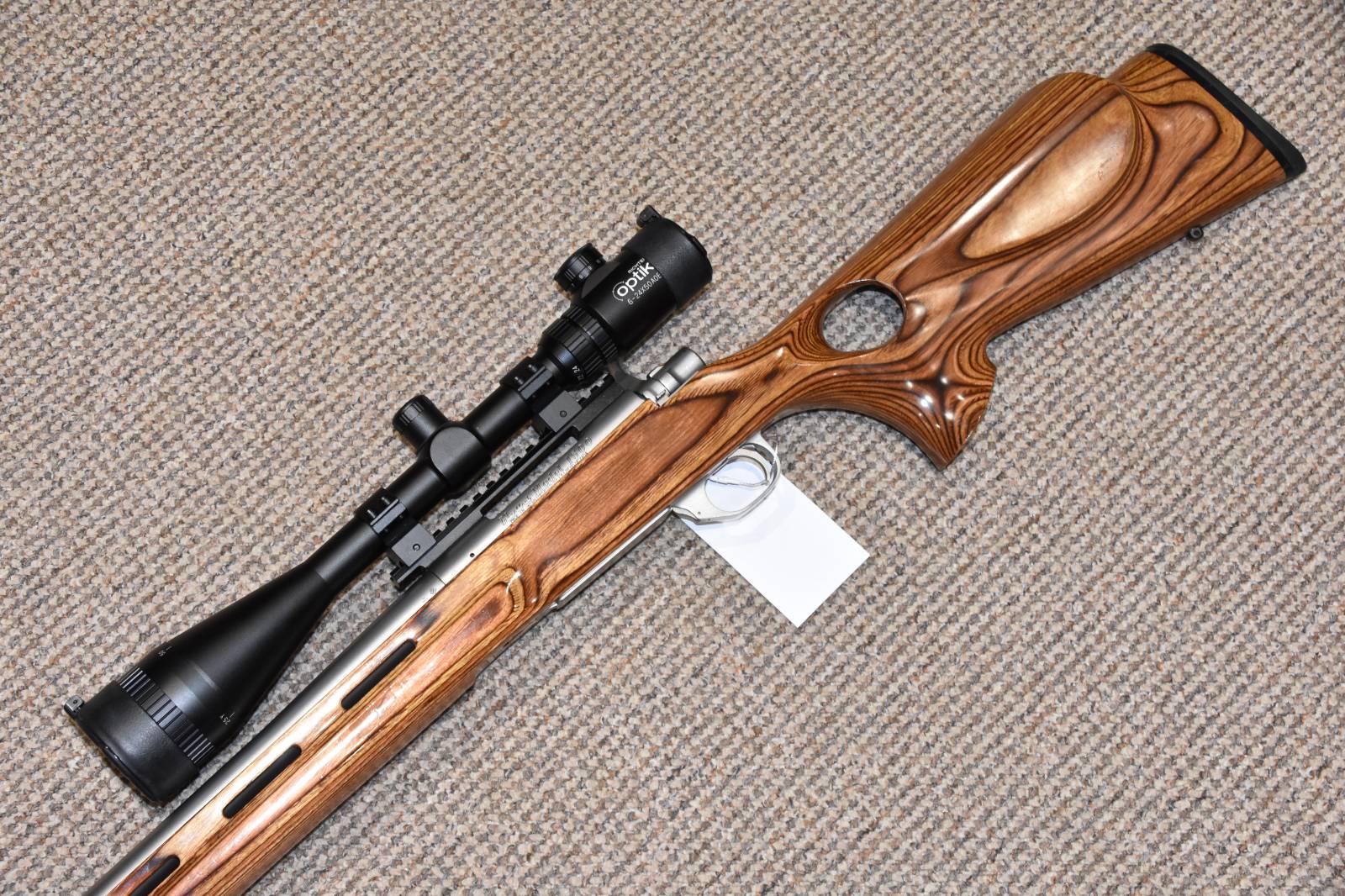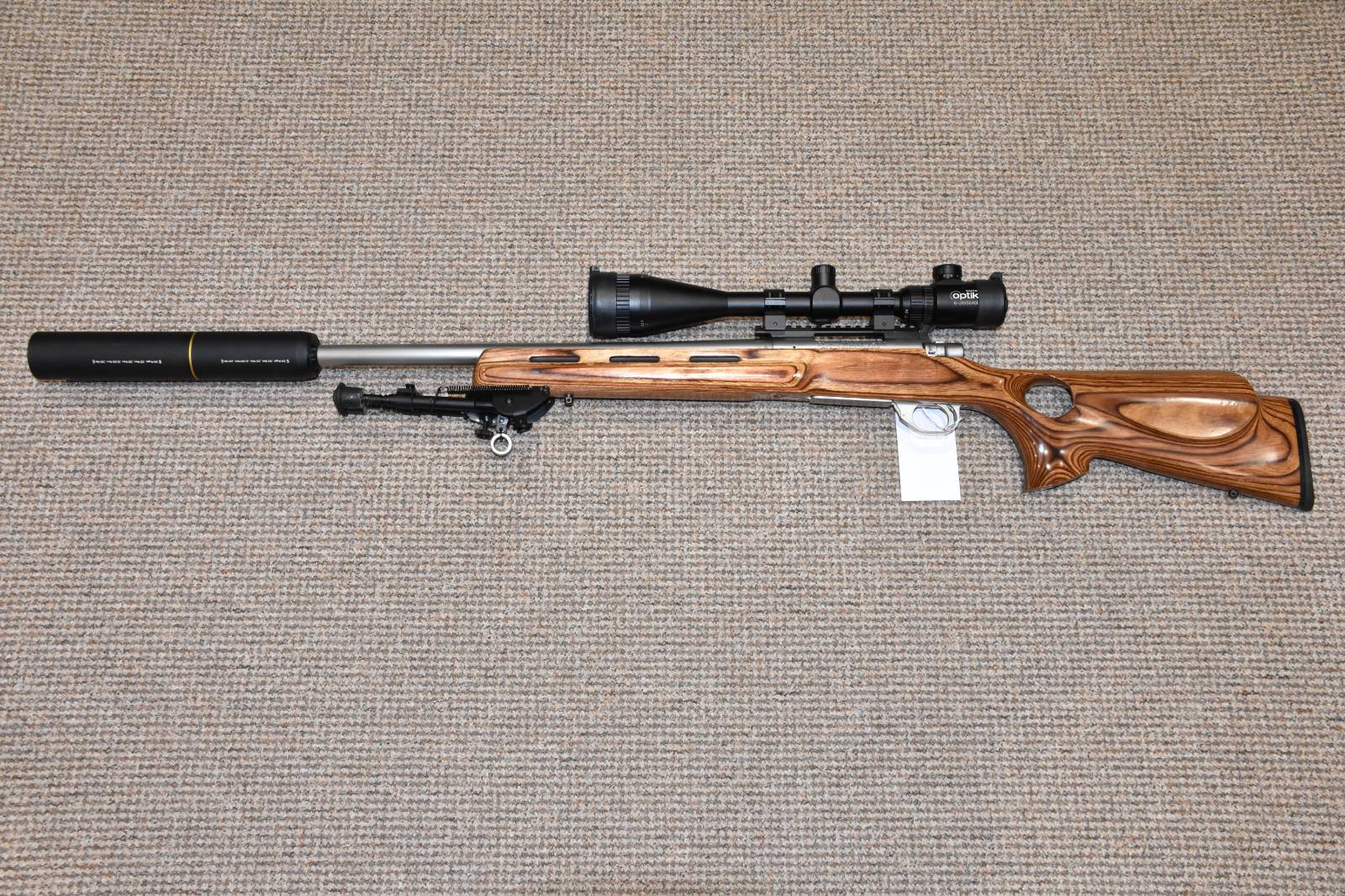.223 Howa 1500 Varmint Stainless Bolt action rifle 24" Barrel Richter Optik 6-24x50 illuminated scope Stalon 'X' Series moderator Picatinny rail 2 Piece scope mounts Laminate thumbhole stock Adjustable bi-pod Floor plate Rubber butt pad Stainless Varmint barrel Sling studs Flip up scope caps £795 including scope, moderator and bipod Finance Available