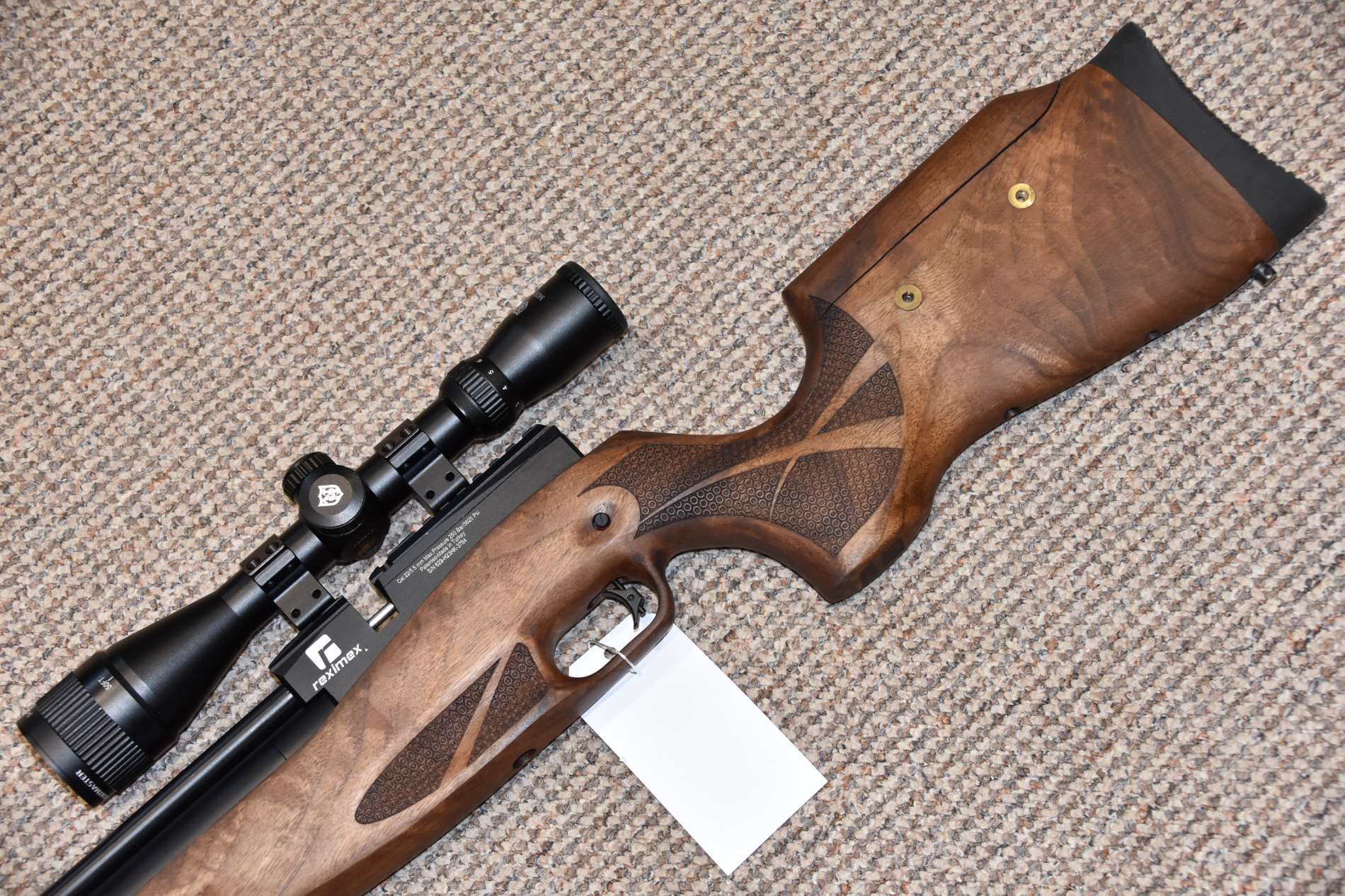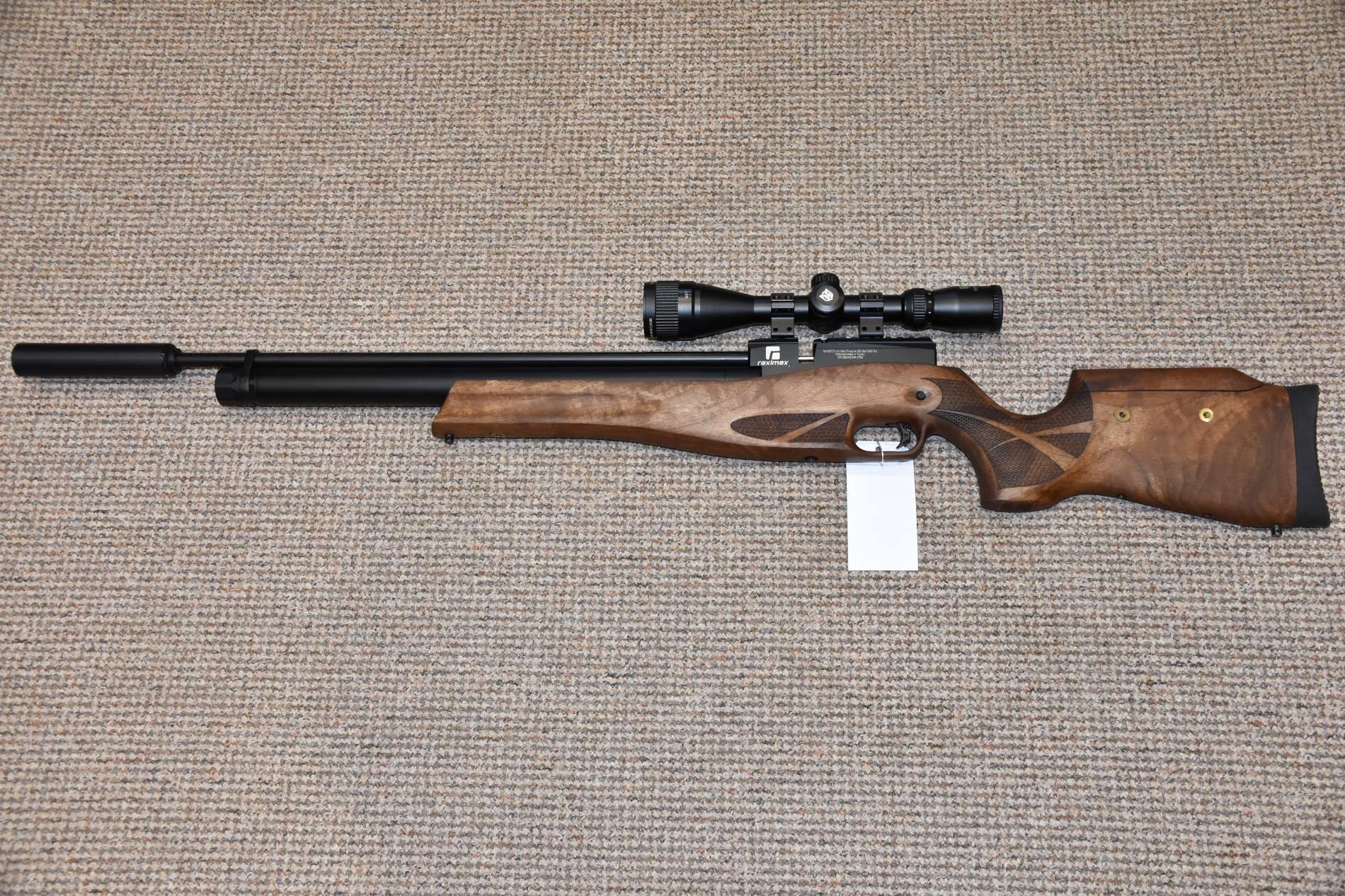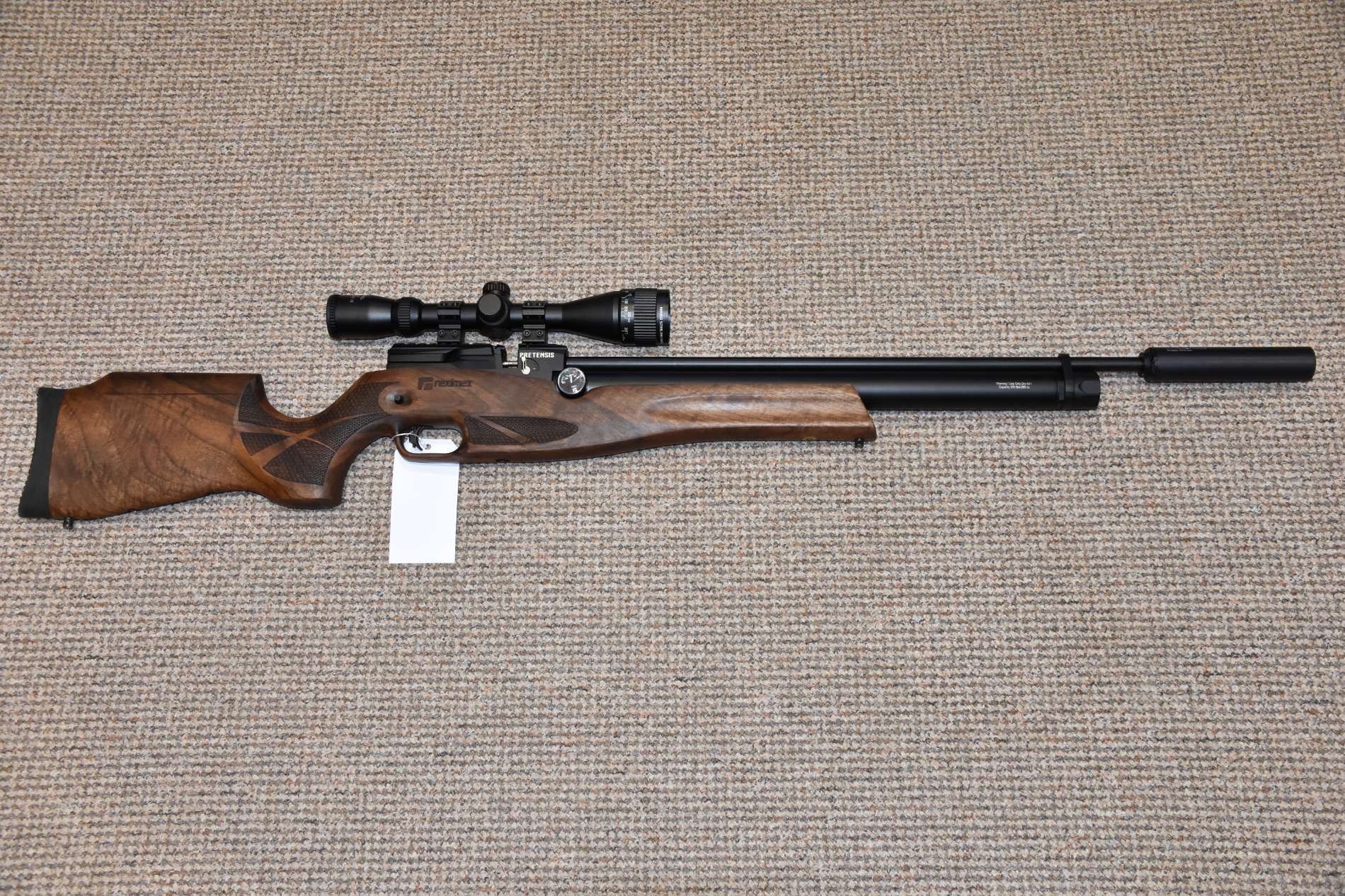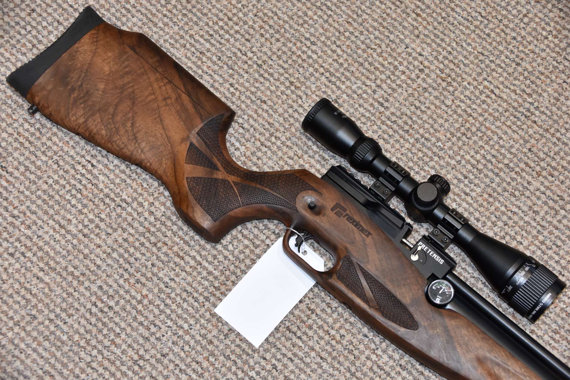 .22 Reximex Pretensis Walnut PCP Air Rifle 3-9x40 Nikko Stirling Scope 25mm High Mounts 2 x 12 Round Magazine Adjustable Power (sub 12-40ftlbs) Ambidextrous Turkish Adjustable Walnut Stock Threaded Barrel (1/2x20 UNF) 22" Barrel - 103cm" Overall Length Fills to 250bar Around 210 Shots per Fill at Low Power Picatinny Rail £450 including scope and moderator Finance Available