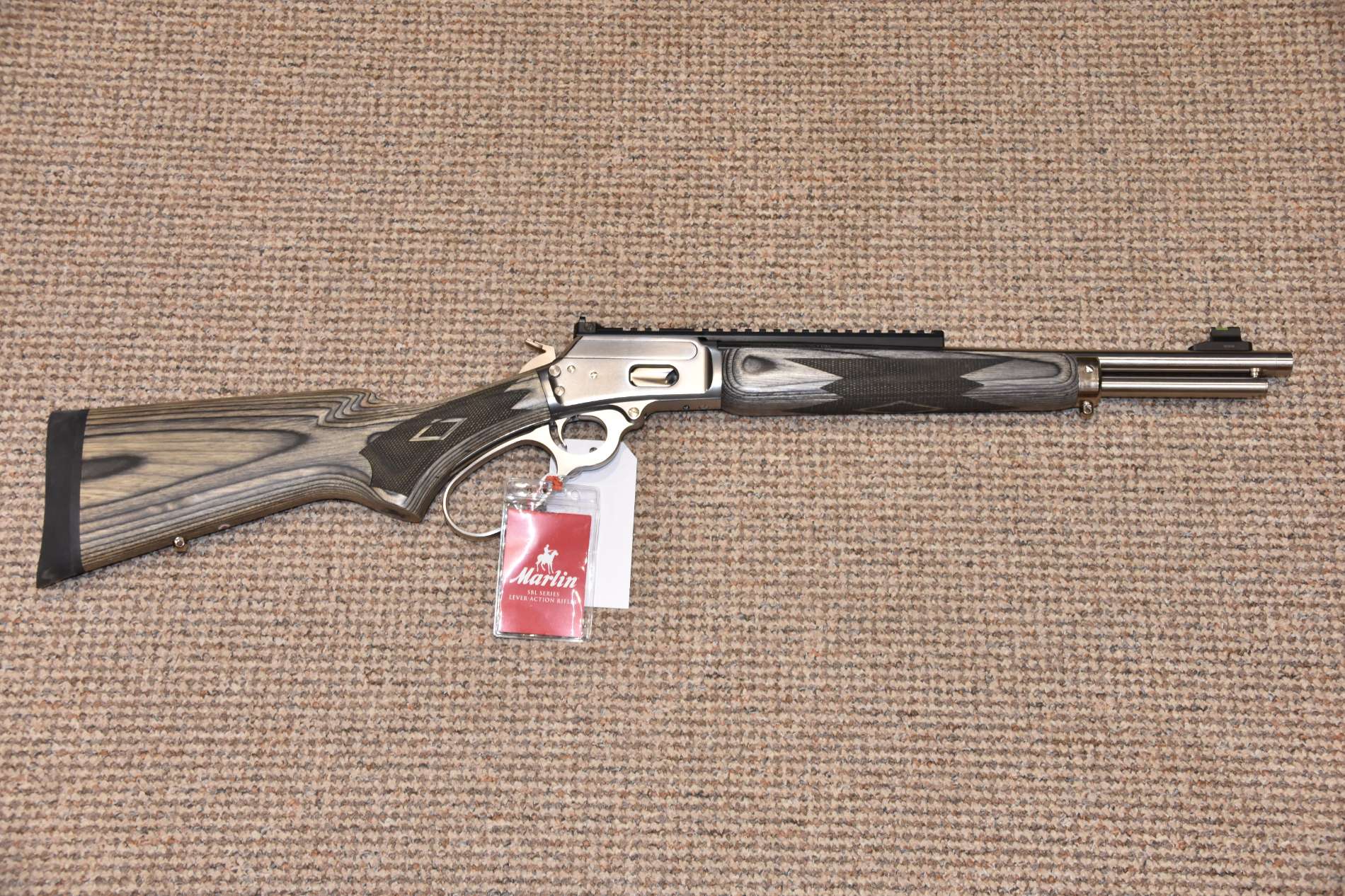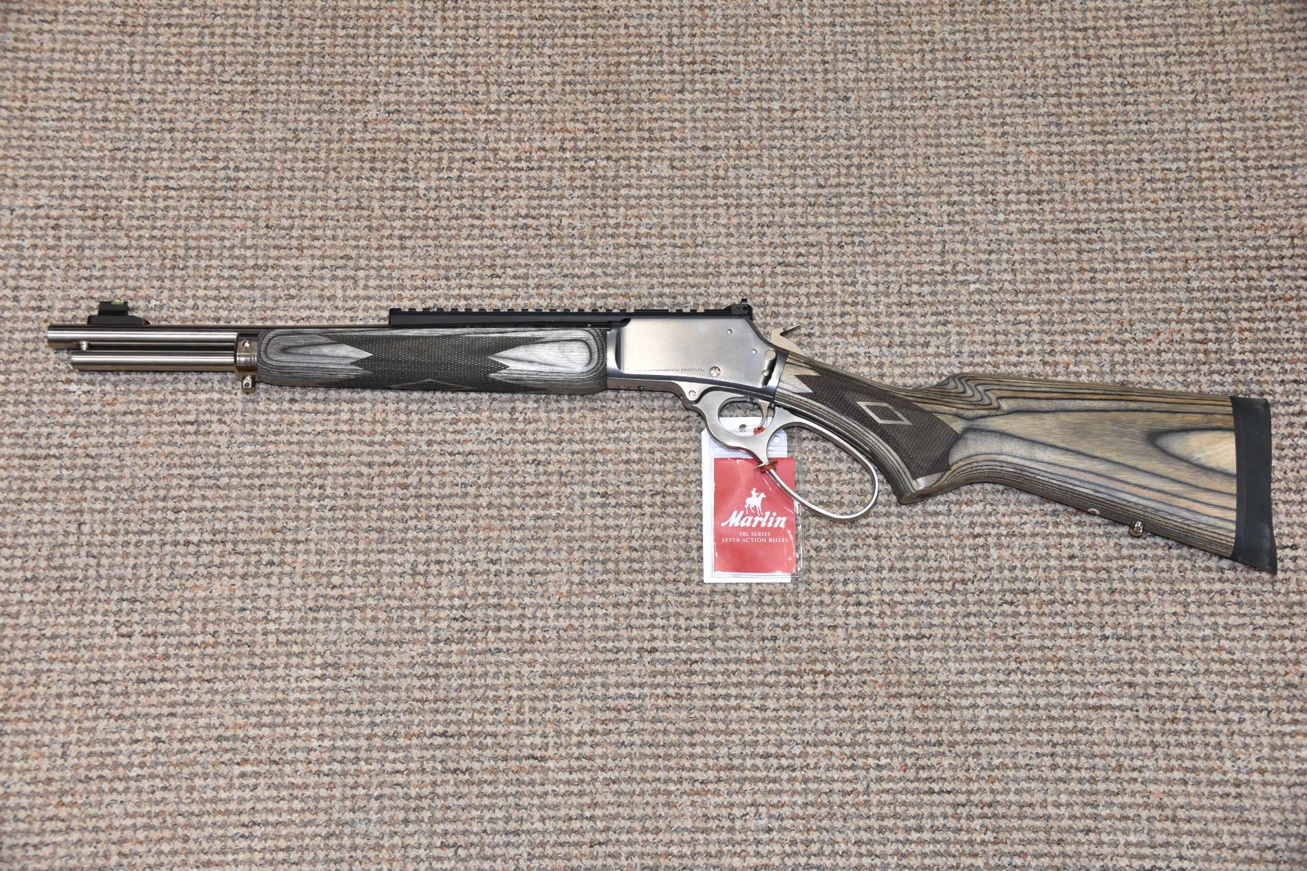.357 MAG Marlin 1894 SBL Under Lever Rifle 16.1" Stainless barrel 8 Round capacity Grey Laminate Stock Fibre Optic front sight Adjustable rear Ghost Ring sight Polished Steel action Threaded barrel Stainless Sling studs Brand New £1750 Finance Available