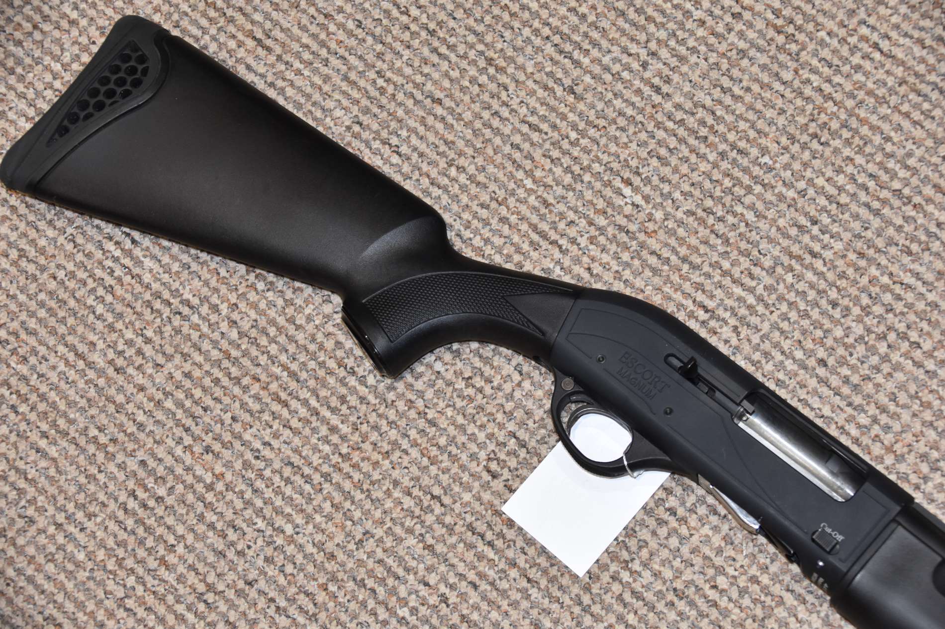 12 Gauge Hatsan Escort Magnum Semi-automatic shotgun 28" Barrel 14.5" length of pull Multichoke - 5 Chokes 3 Shot capacity Synthetic stock Push button safety Steel proofed Chambered in 3" £225 Finance Available