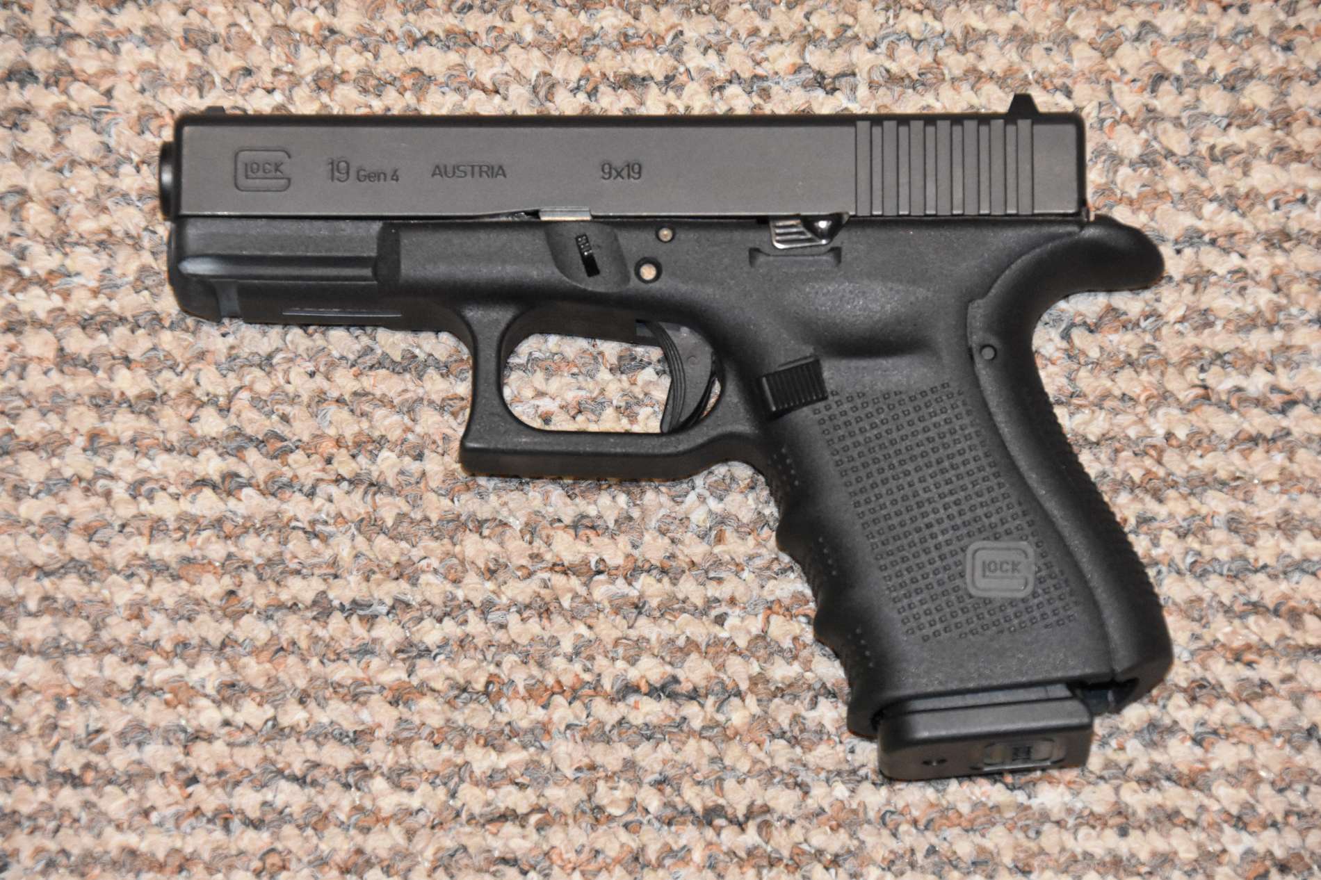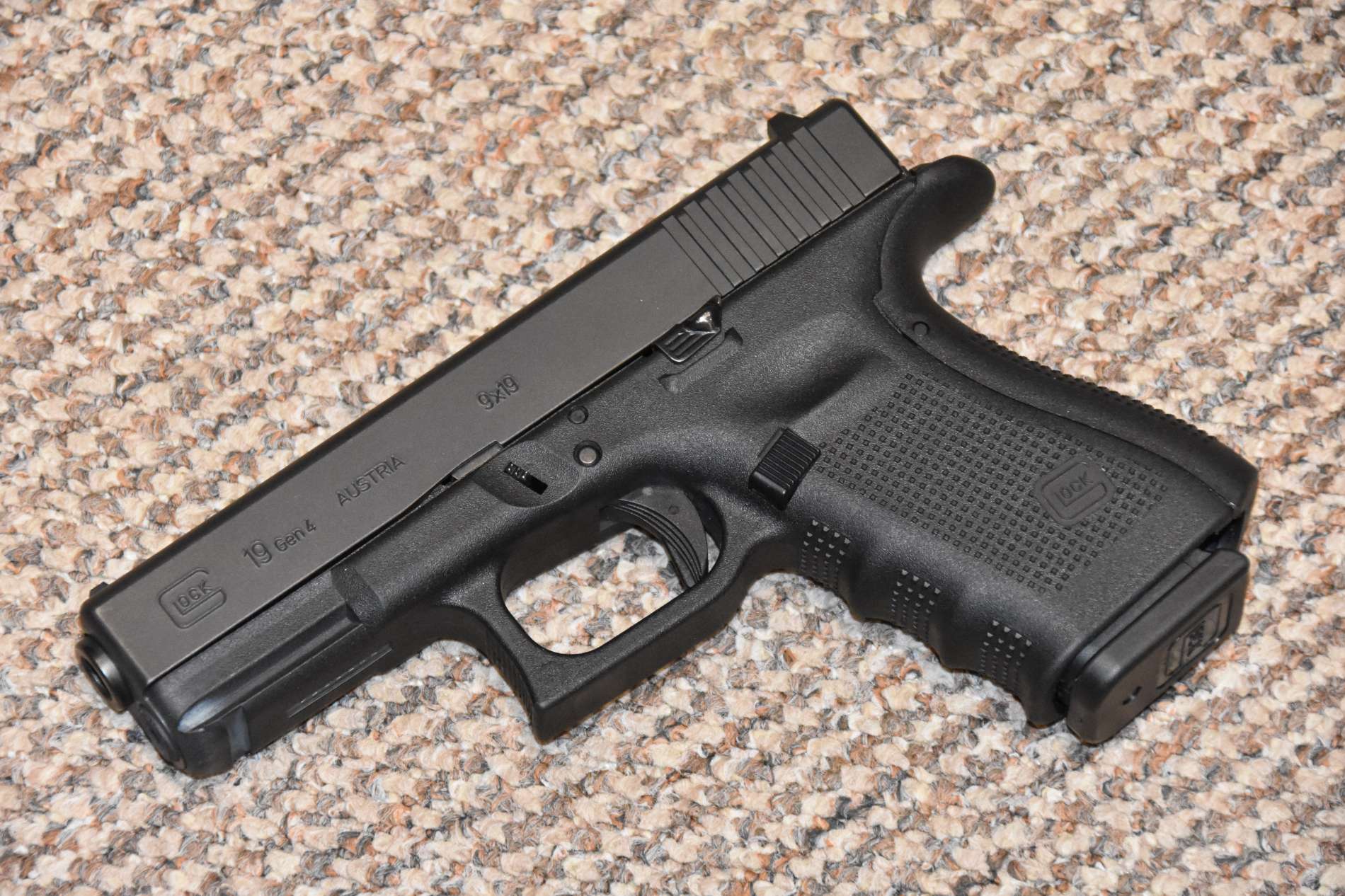 9mm Glock 19 Gen 4 Semi automatic pistol 4" Barrel 2 x 15 round detachable magzines Polymer frame Nitride Steel slide Reversable magazine release Interchangeable backstraps (Spares included) 'SafeAction' trigger system Comes in Glock hard carry case £450 Finance AVailable
