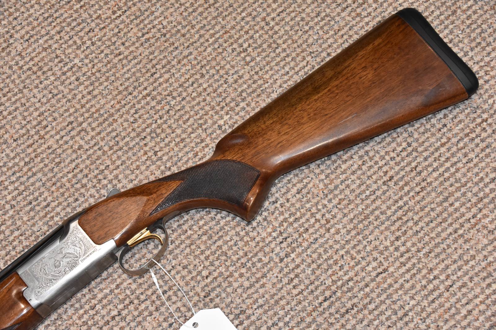 12 Gauge Browning B525 Game Over and under shotgun 30" Barrels 14.75" Length of pull Multichoke - 4 Chokes Ejectors Single selective trigger Steel proofed Chambered in 3" Proofed in the year 2014 Comes in Browning hard carry case £1195 Finance Available