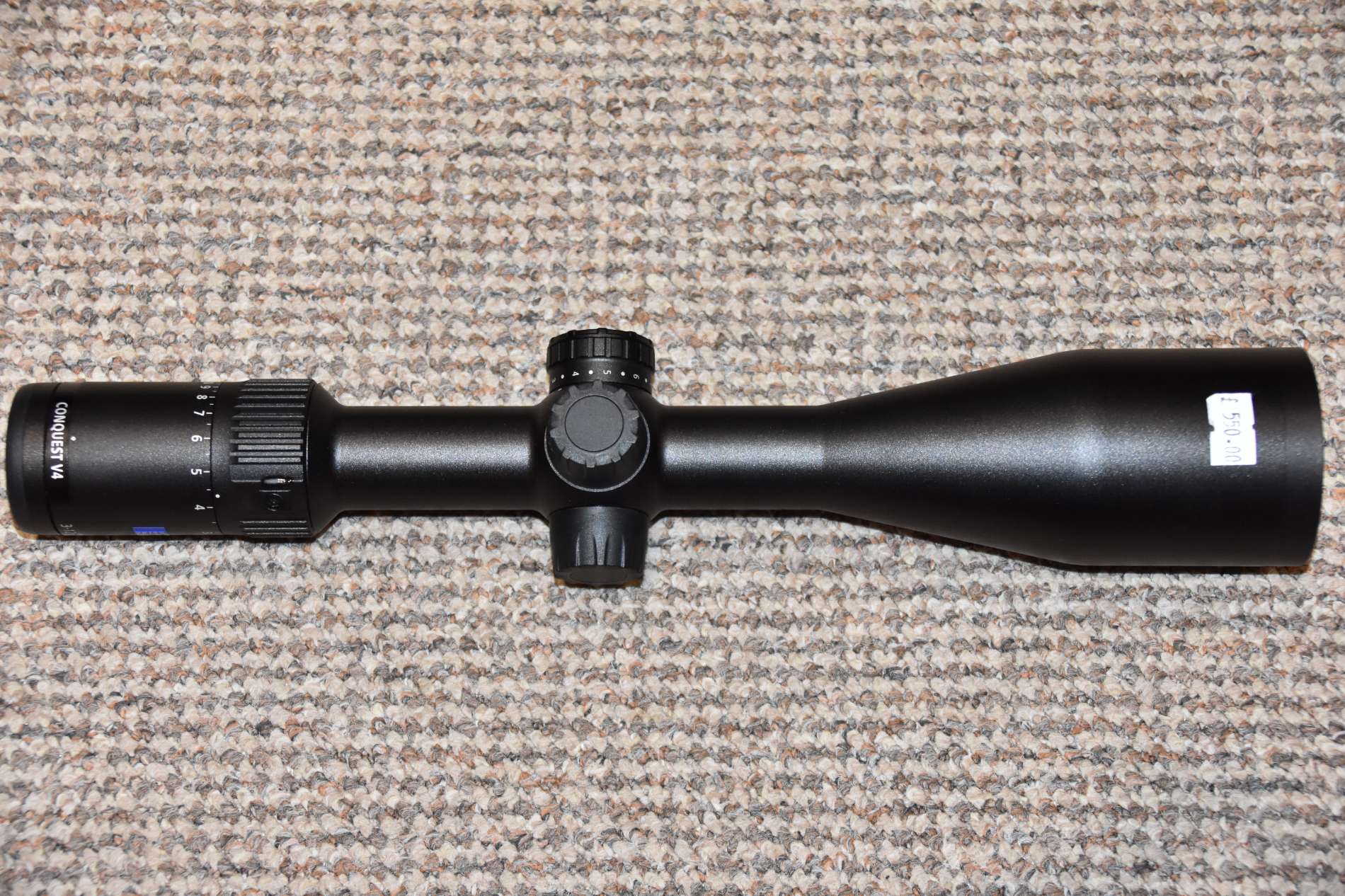 Zeiss Conquest V4 3-12X56 30mm Tube diameter MOA 1 click = 1/4"/0.635cm at 100 yards Made in Japan Capped Elevation turret Capped Windage turret Illuminated dot reticle Second Focal Plane £550 Finance available Nationwide shipping available.