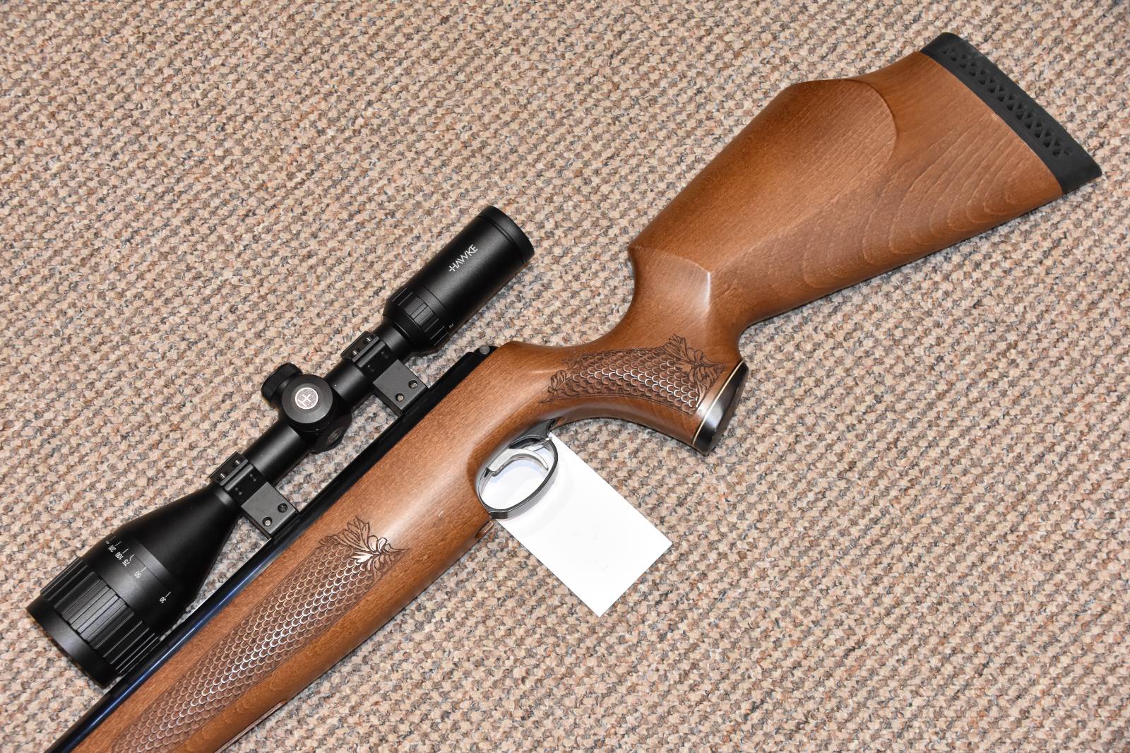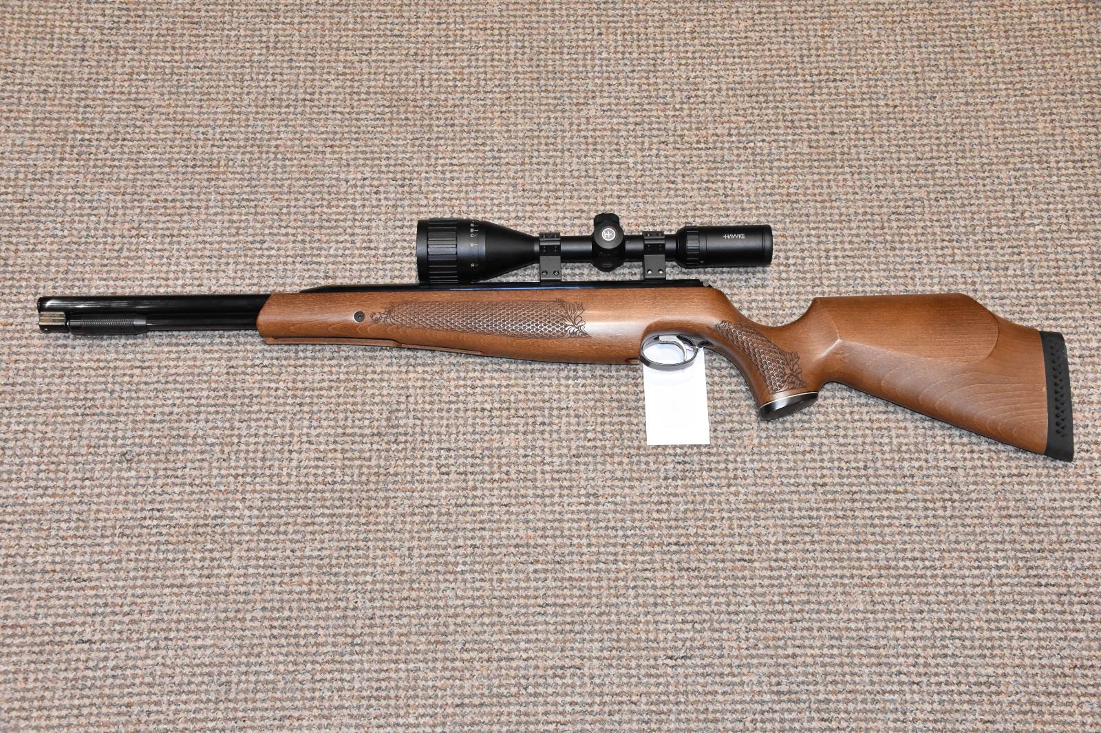 .22 Air Arms TX200 Hunter Carbine Under lever air rifle 12" Barrel Hawke 3-12x50 illuminated scope 2 Piece scope mounts Push button lever release Auto safety Adjustable trigger Mk3 with 'fish-scale' engraved stock Rubber butt pad Very clean example £395 including scope Finance Available