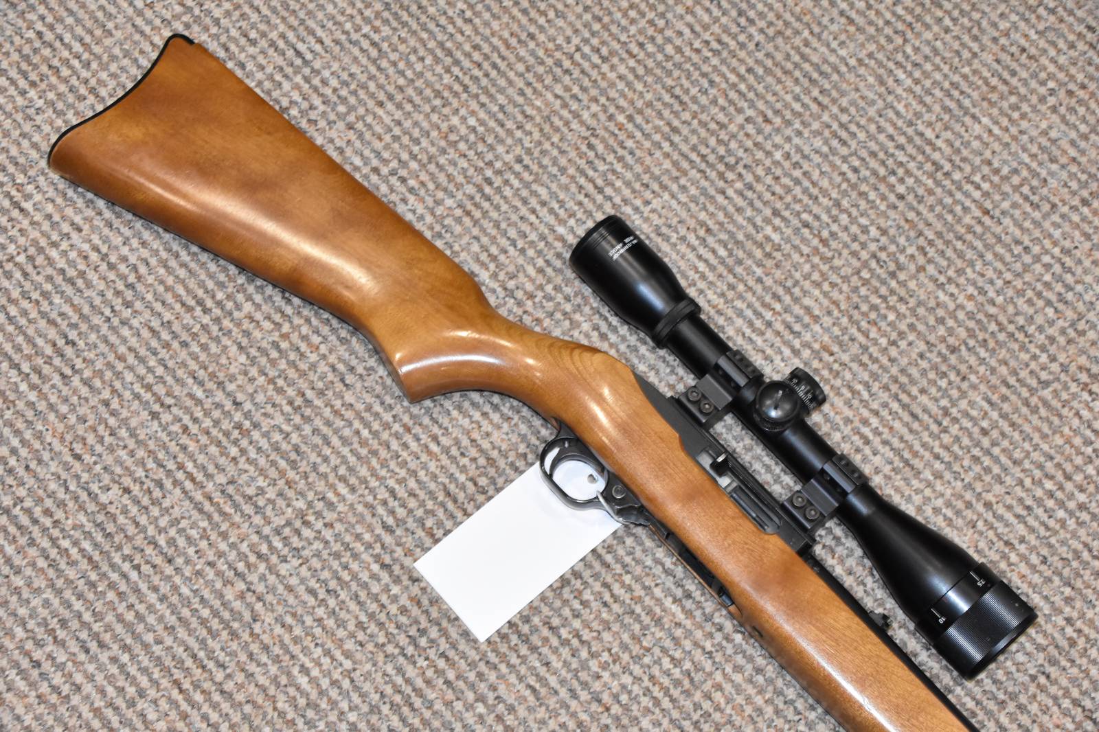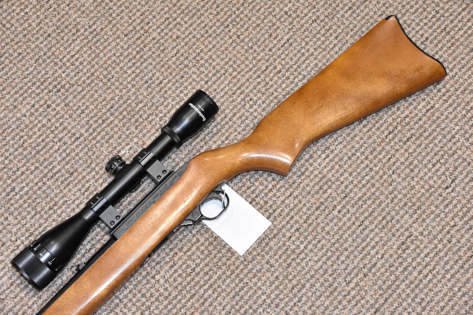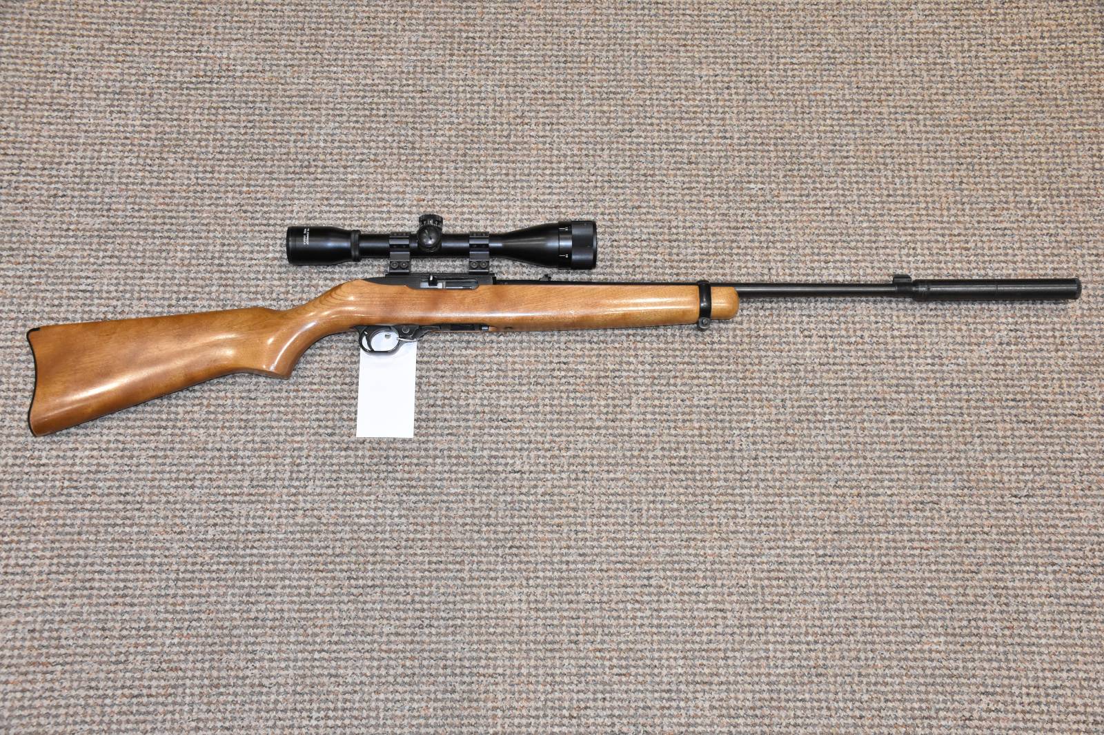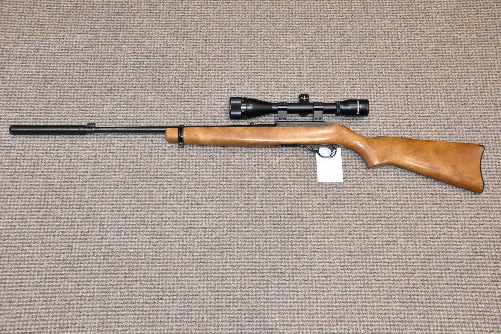 .22LR Ruger 10/22 Beech Semi automatic rifle 18" Blued barrel 10 Round detachable magazine Bushmaster 4x40 scope Parker Hale sound moderator 2 Piece scope mounts Original iron sights still fitted £395 including scope and moderator Finance Available