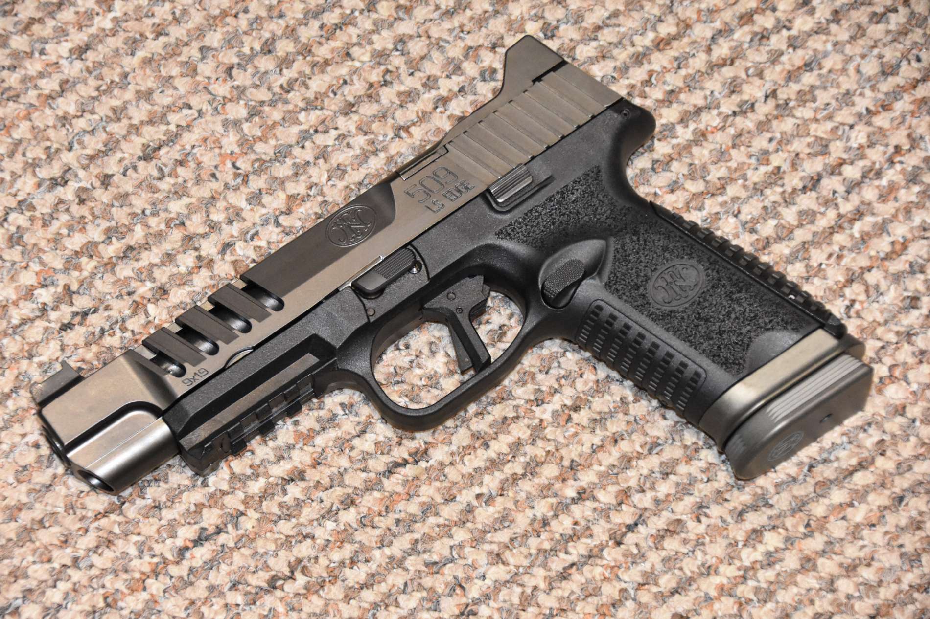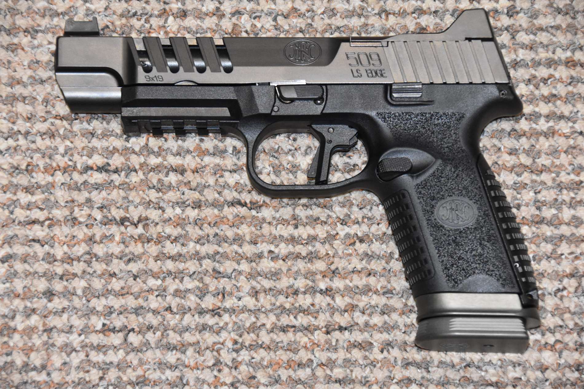 9mm FN 509 LS Edge Semi automatic pistol 5" Barrel Double action 3 x 17 Round detachable magazines Flat face trigger with integrated safety Interchangeable backstraps (Spare included) FN Low profile optics ready system Front fibre optic sight Oversized ambidextrous slide release Graphite PVD finish Comes in FN zip up soft carry case Brand New £1295 Finance Available