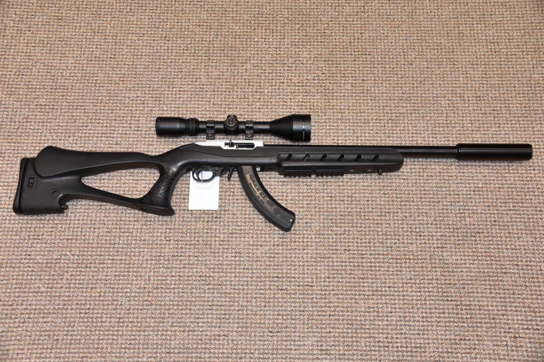 .22LR Ruger 10/22 Semi automatic rifle 16" 'E.R Shaw Customs' heavy barrel 25 Round detachable magazine Archangel Synthetic stock Adjustable in length Hawke Sport HD 3-9x50 scope SAK Sound moderator Lower picatinny accessory rail Sling studs £450 including scope and moderator Finance Available
