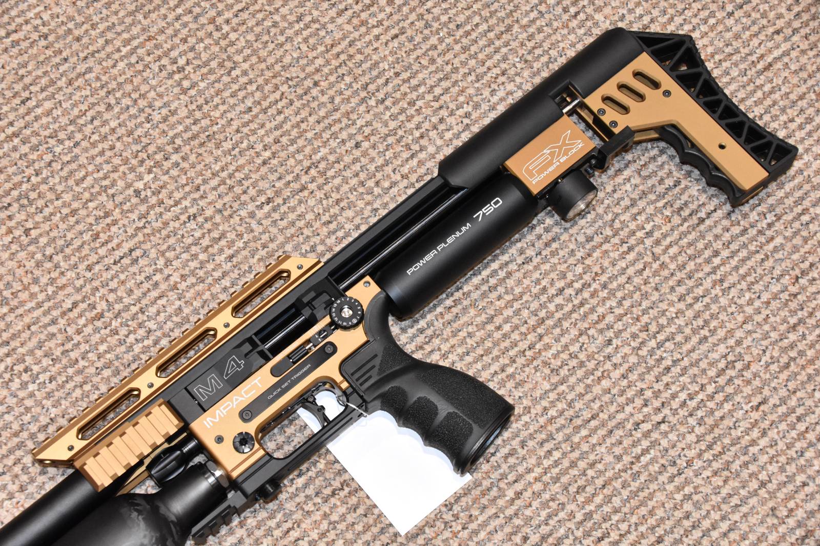 .25 FX Impact M4 Extended FAC Copper Pre charged air rifle 800mm Barrel Superior Heavy STX Slug barrel Up to 160 shots 25 Shot magazine 580cc carbon bottle AR15 Style grip 30MOA Picatinny rail Quick set trigger Adjustable power Up to 100 ft/lbs of power QuickTune system 3.35kg weight Quick connector foster probe Threaded for moderator £Call for best price, we wont be beaten! Finance Available