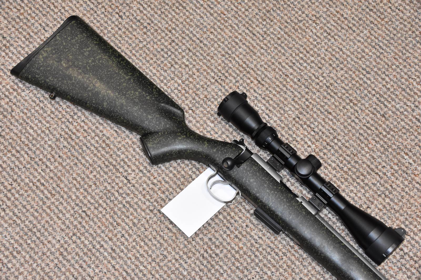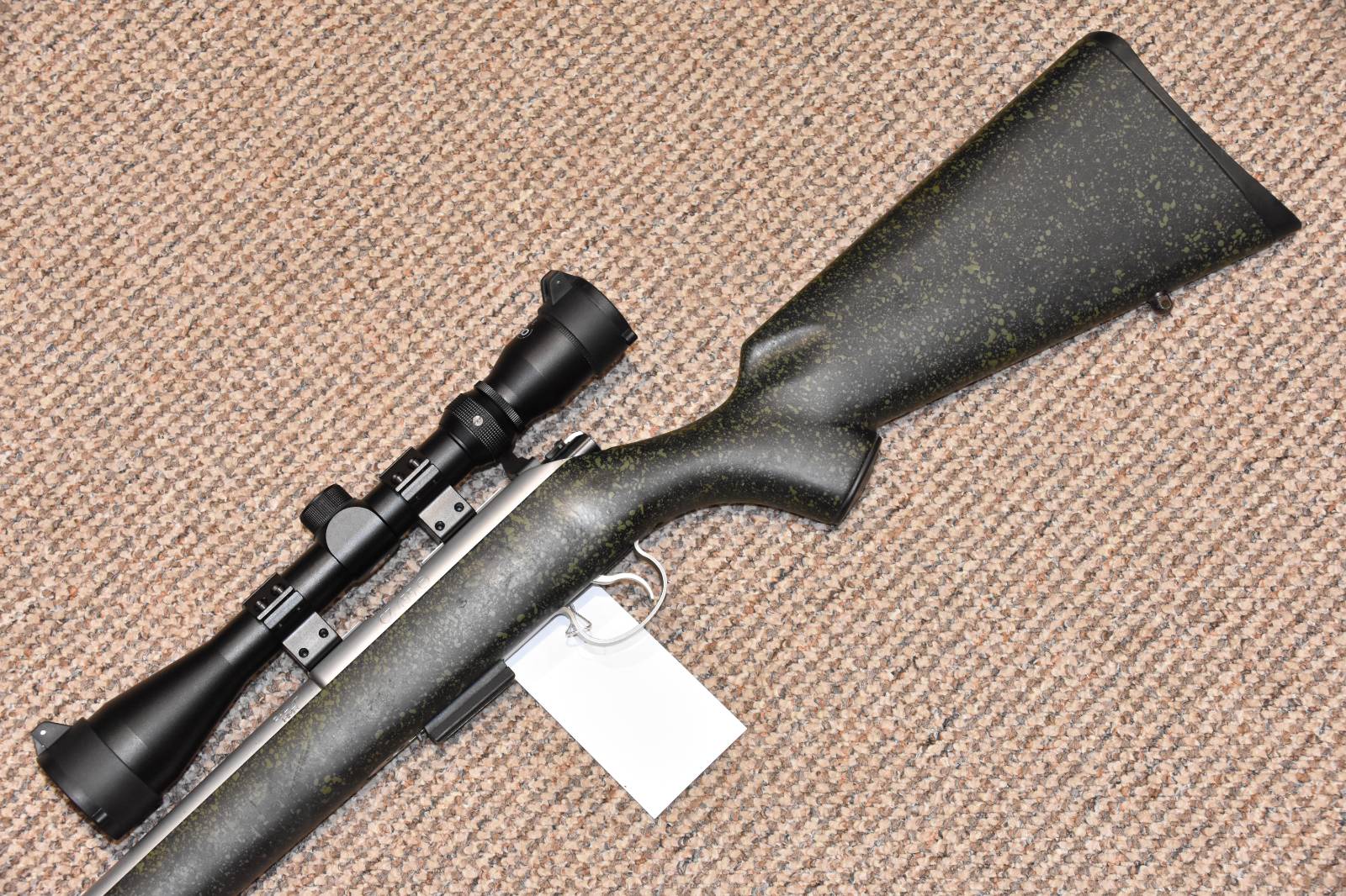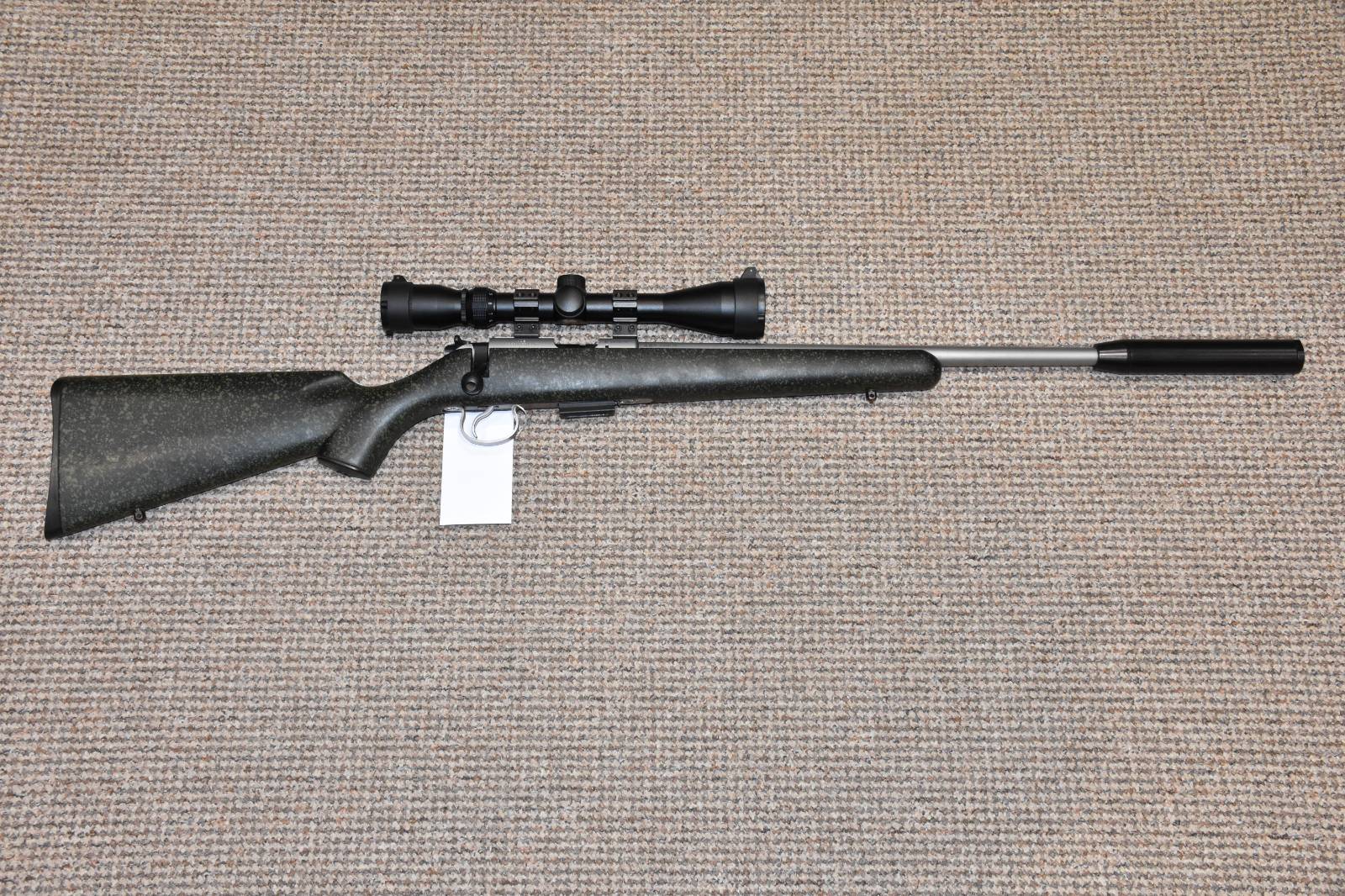 .17HMR CZ 455 Stainless Green Bolt action rifle 16" barrel 5 Round detachable magazine Richter Optik 3-9x40 scope 2 Piece scope mounts Flip up scope caps Scirocco sound moderator Stainless Barrel Green Speckle synthetic stock Sling studs £450 including scope and moderator Finance Available