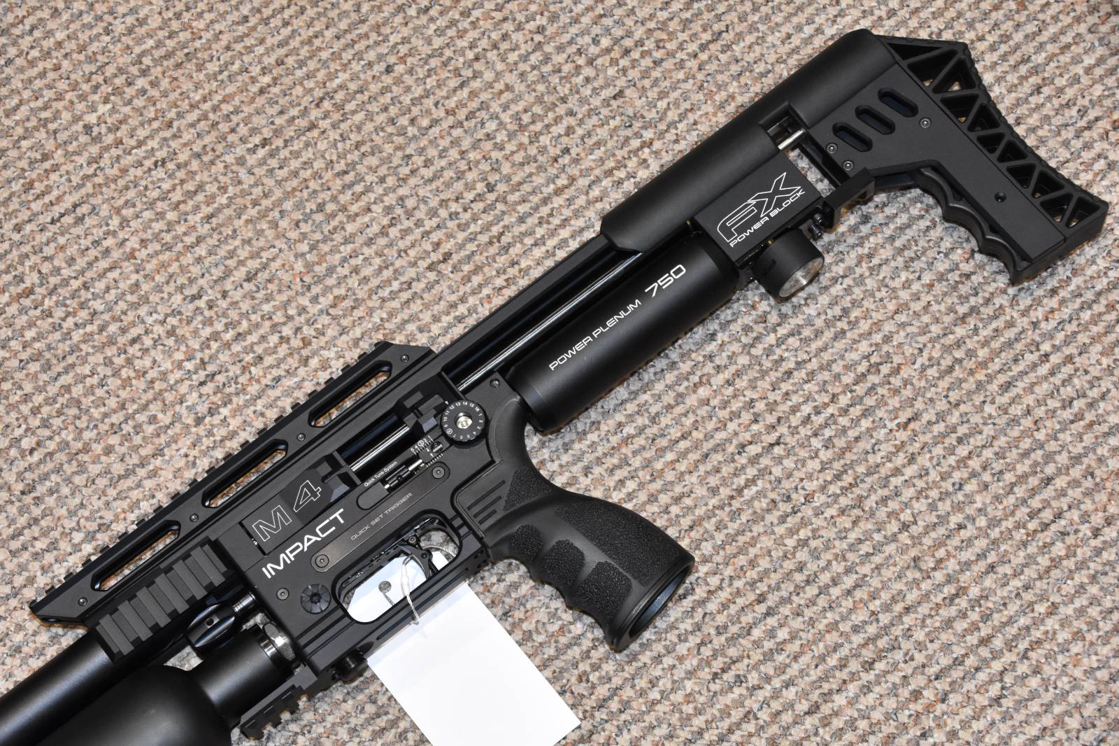 .22 FX Impact M4 Sniper Pneumatic pre-charged air rifle 28 shot detachable magazine Sniper Barrel: Superior STX 700 mm, up to 330 shots per fill Fill pressure Max 250 bar (3625 psi) up to 87 ft/lbs of power Sniper: 580 cc carbon fibre wrapped air cylinder Comes in hard FX carrying case £POA. Call for best price available, won't be beaten! Finance available.