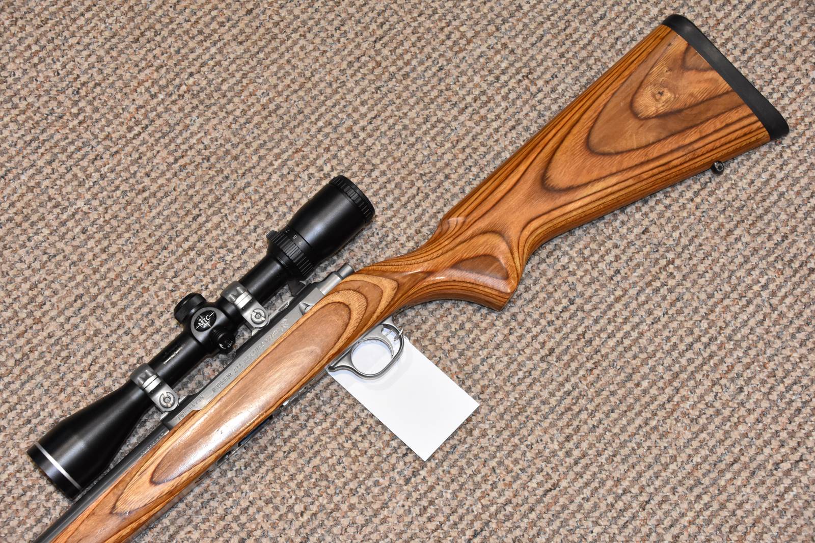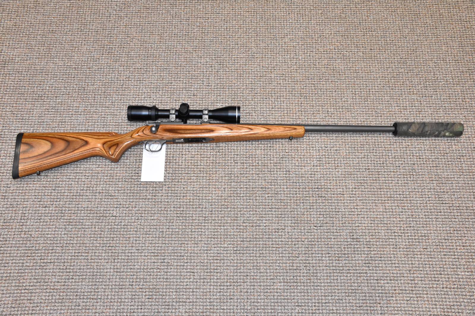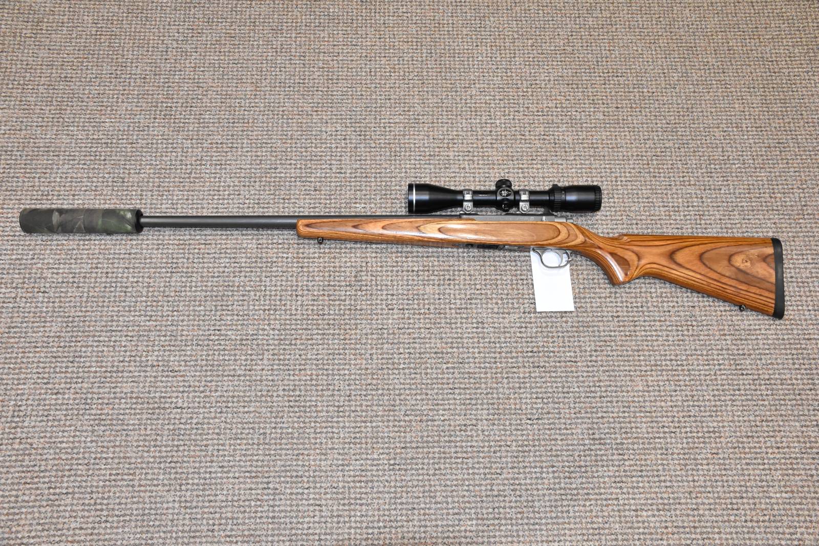 .22 Magnum Ruger 77/22 Bolt action rifle 24" Barrel 9 Round detachable magazine Genesis 3-9x40 scope Ruger stainless mounts Sound moderator Heavy barrel Laminate wooden stock Sling studs £295 including scope and moderator Finance Available