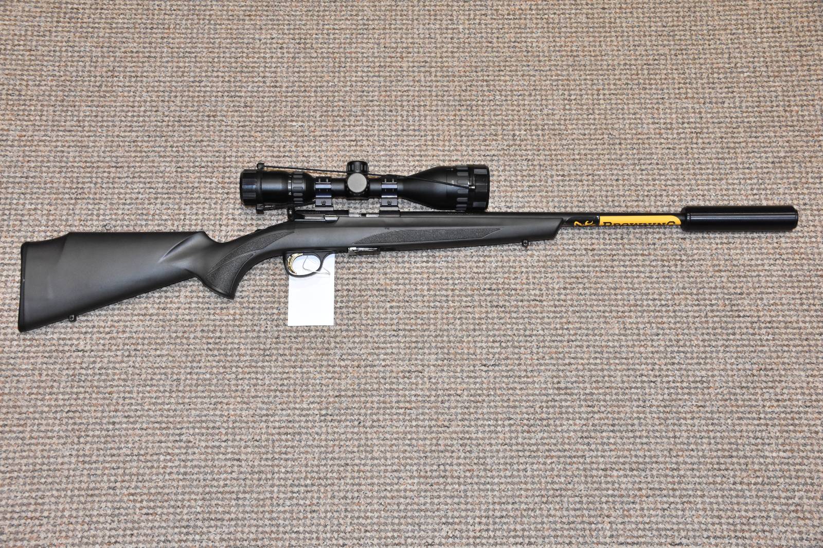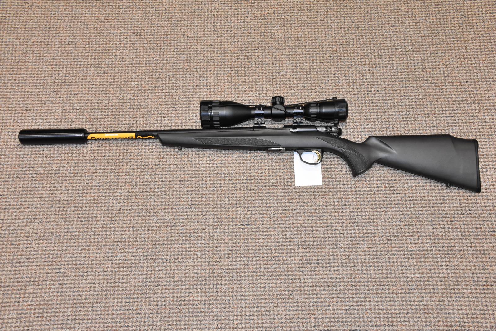 .17HMR Browning T-Bolt Synthetic Straight pull rifle 16" Barrel Top Notch 3.5-10x42 scope 2 Piece Mounts SAK Sound moderator 10 Round detachable 'Helix' magazine Sling studs Synthetic stock £450 including scope and moderator Finance Available
