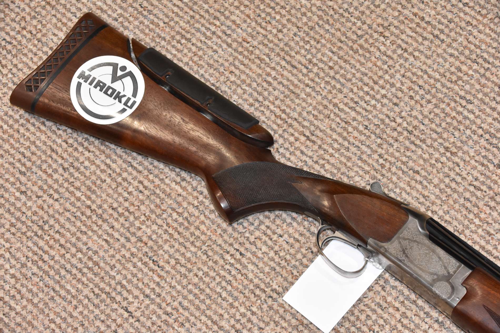 12 Gauge Miroku MK-38 Trap Grade 1 Over and under shotgun 32" barrels 14.25" Length of pull Fixed choke - 3/4 & Full Ejector Adjustable comb Single selective trigger Chambered in 2.75" Proofed in the year 1997 £895 Finance Available