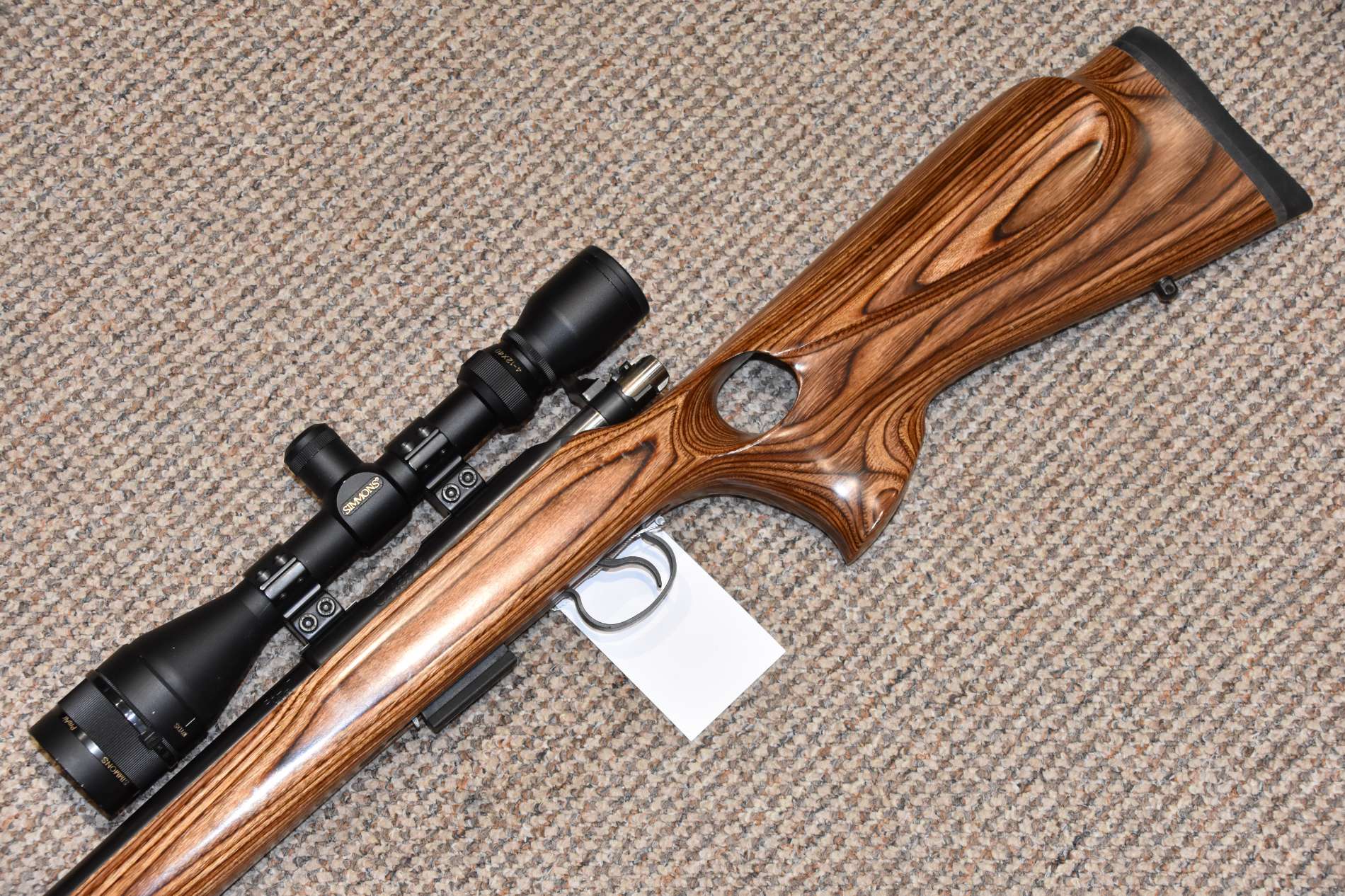 .17HMR CZ 455 Thumbhole Laminate Varmint Bolt action rifle 16" Varmint barrel Simmons 4-12x40 illuminated scope Wildcat sound moderator 5 Round detachable magazine Thumbhole stock Sling studs £450 including scope and moderator Finance Available