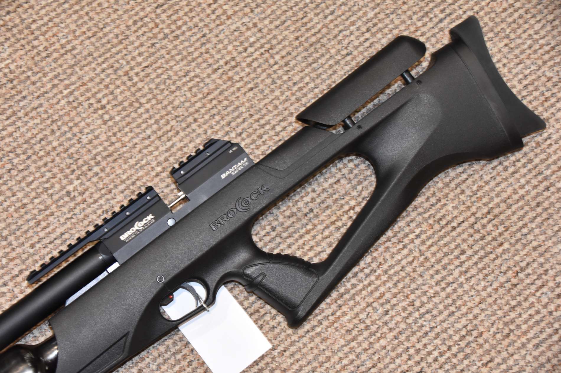 .22 Brocock Bantam Sniper HR Pre charged air rifle 500mm barrel Synthetic stock Adjustable comb Trigger mounted safety lever Detachable magazine Adjustable power Huma regulated (with gauge) Picatinny scope rail Quick fill connector Lower picatinny accessory rail Threaded for moderator £695 Finance Available
