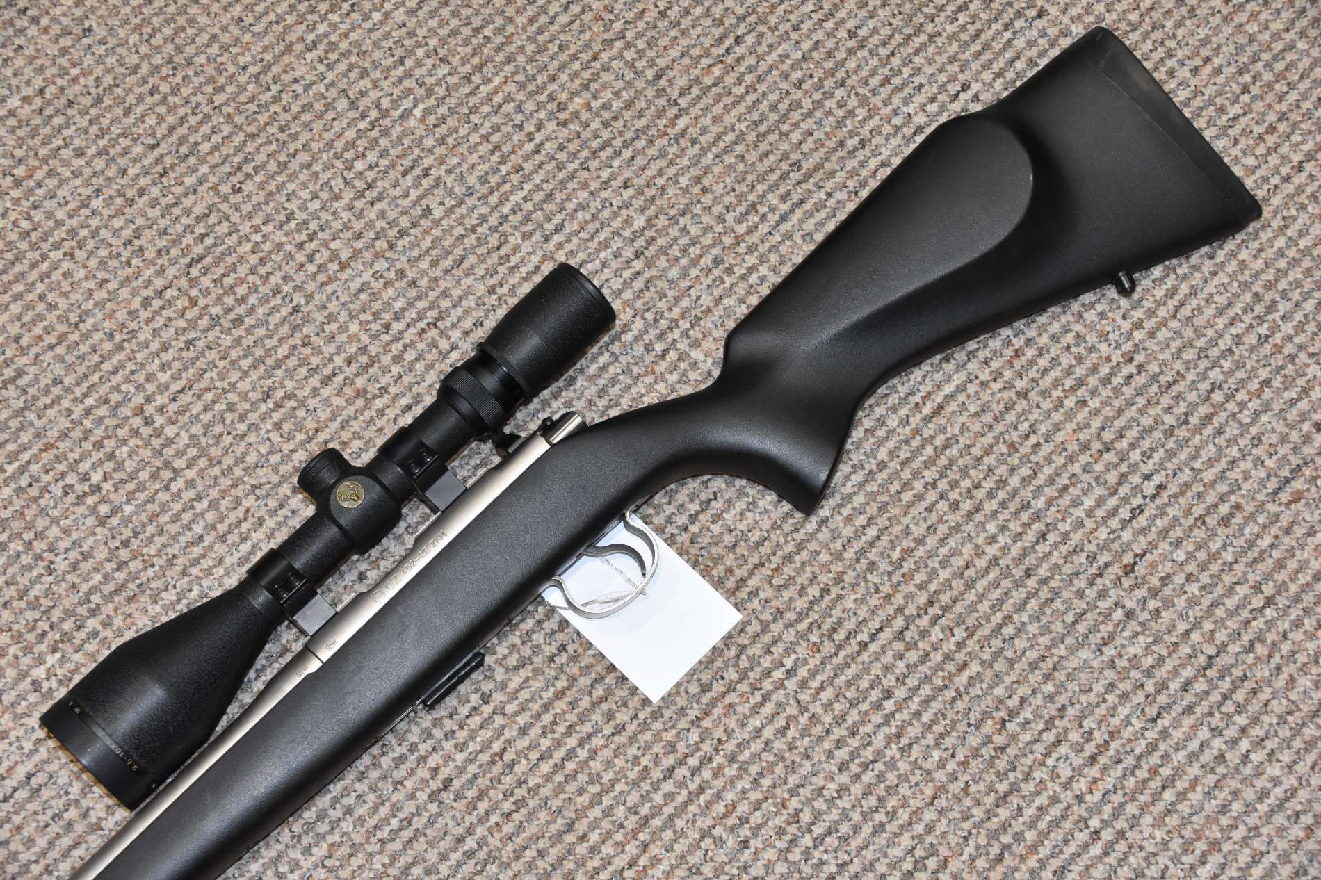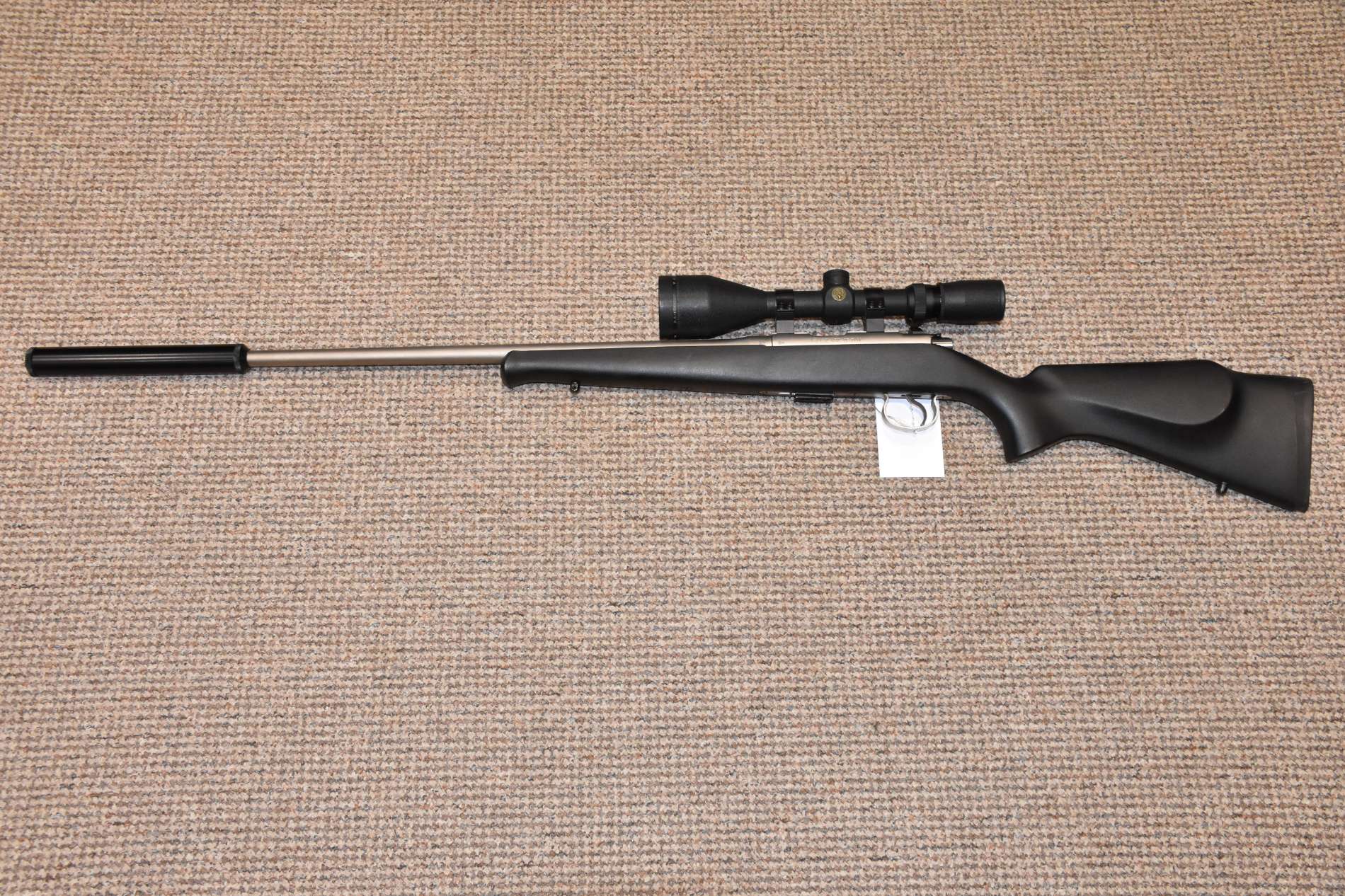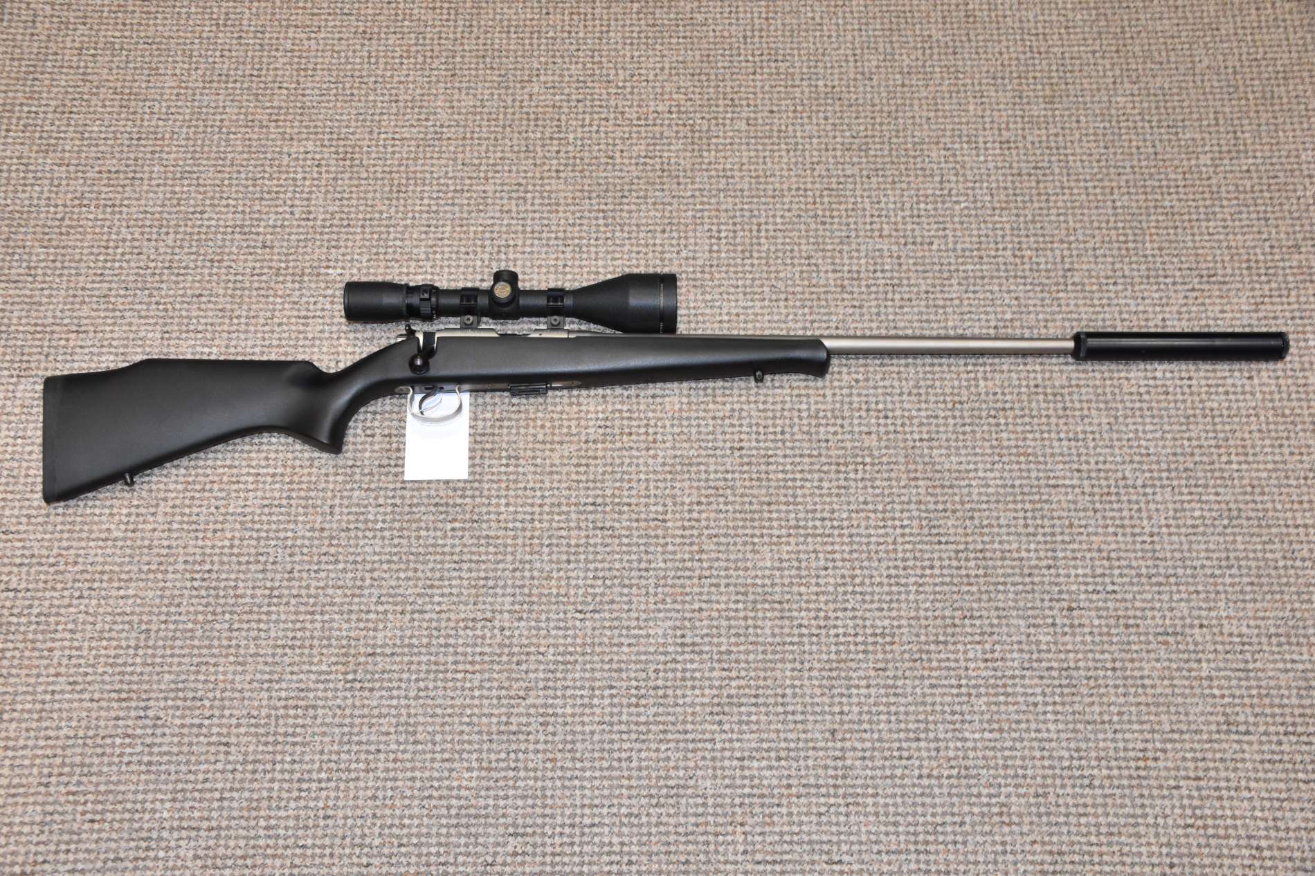 .22LR CZ 452 Style Bolt action rifle 20" Stainless barrel 5 Round detachable magazine Simmons Whitetail 3.5-10x50 scope Sound moderator 2 piece scope mounts Synthetic stock £395 including scope and moderator Finance Available