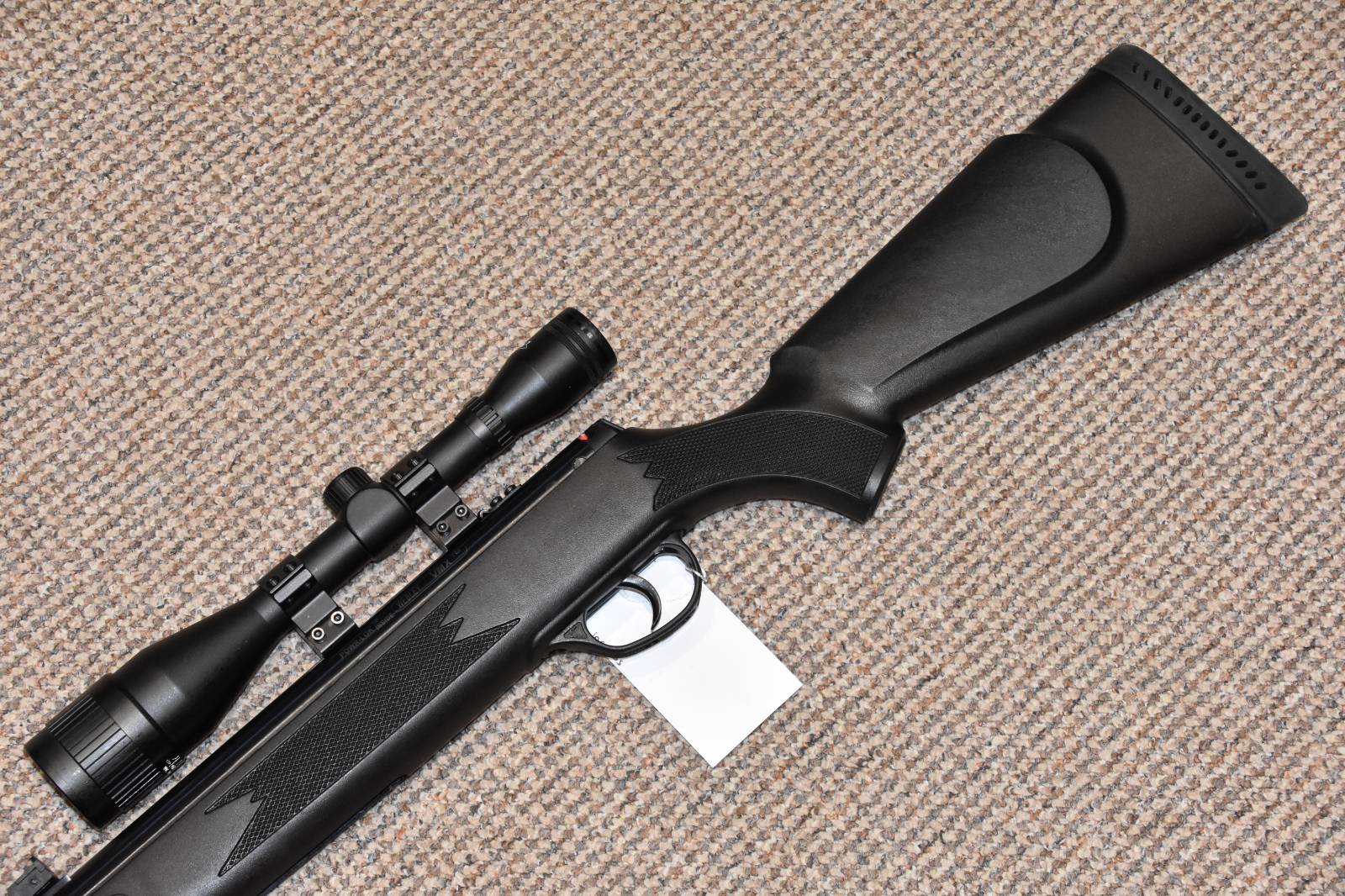 .22 Webley VMX Break barrel air rifle 17" Barrel Walther 6x42 scope 2 Piece scope mounts Original fibre optic sights Steel rifled barrel POWER-LOK mainspring Tested @ 10 ft/lbs Automatic resettable safety catch Two stage trigger Black synthetic stock £150 including scope Finance Available