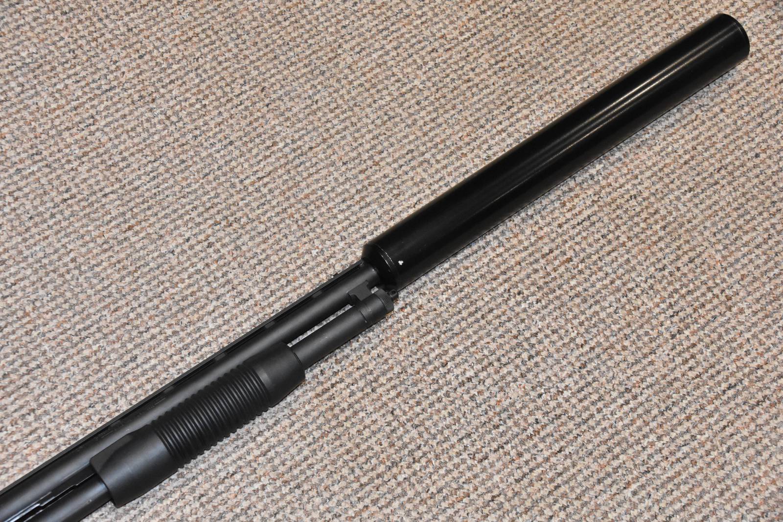 20 Gauge Mossberg 500 Hushpower Pump action shotgun 26" Barrel Hushpower barrel Full Choke Thumb push safety 3" Proofed chamber Black synthetic stock £650 Finance Available