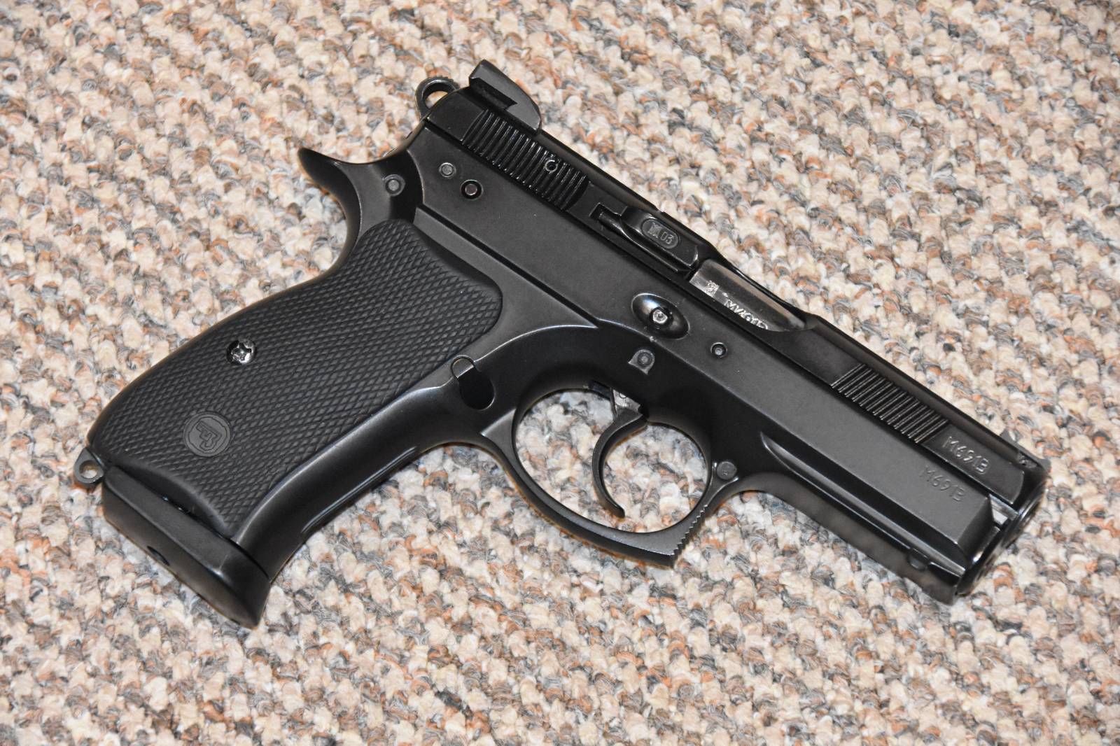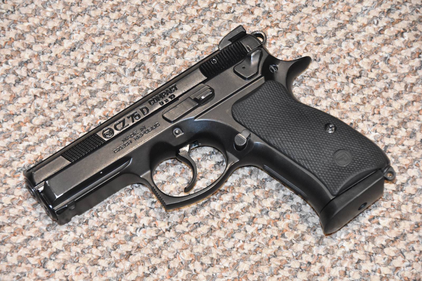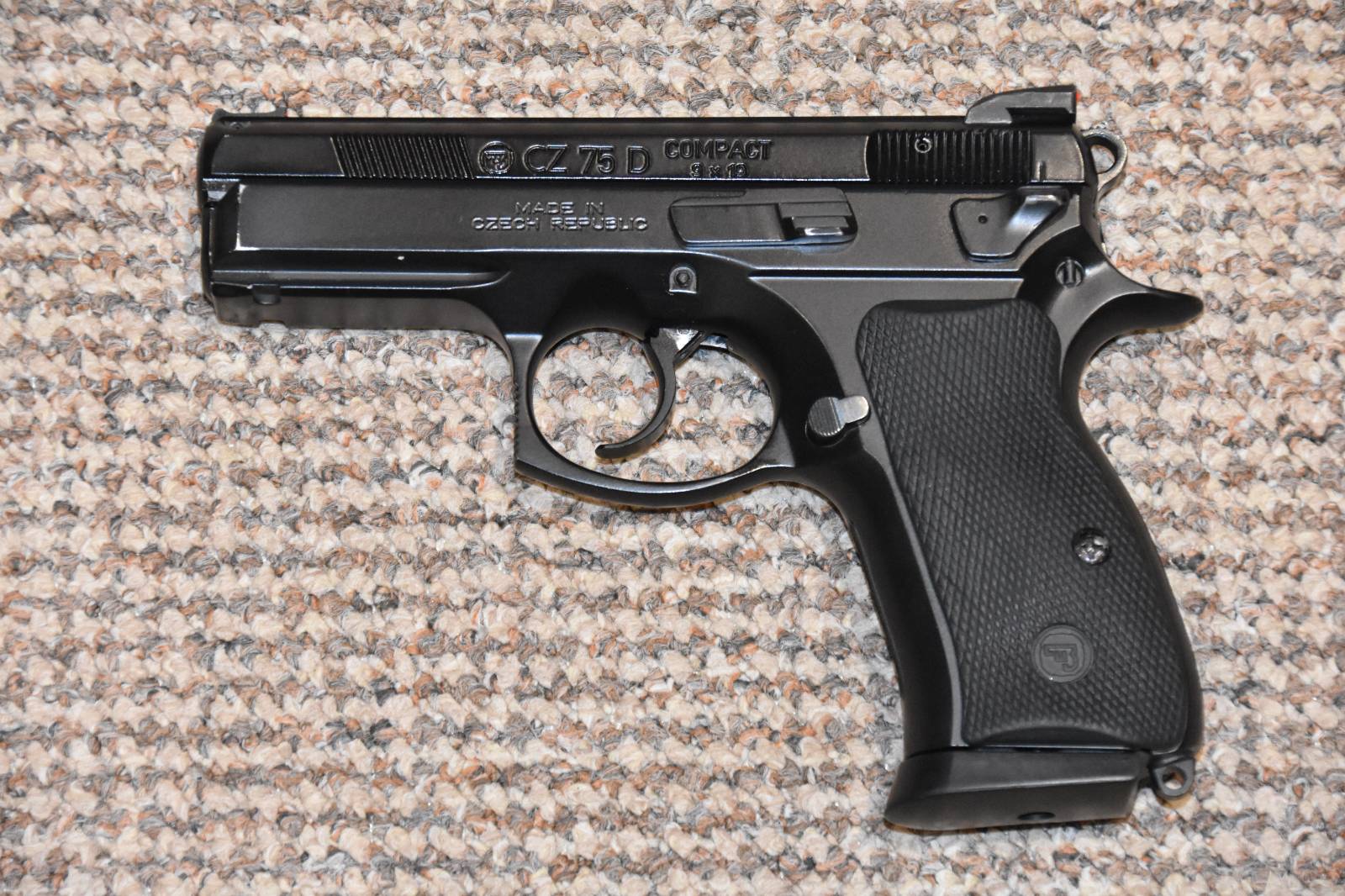 9mm CZ 75D Compact Semi automatic pistol 3.75" Barrel 2 x 14 Round detachable magazines De-cocker safety Double Action / Single Action trigger Rubber grips Lower picatinny accessory rail Fibre optic front and rear sights Comes in CZ hard carry case £295 Finance Available