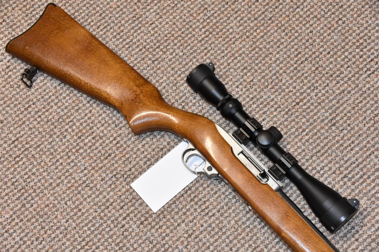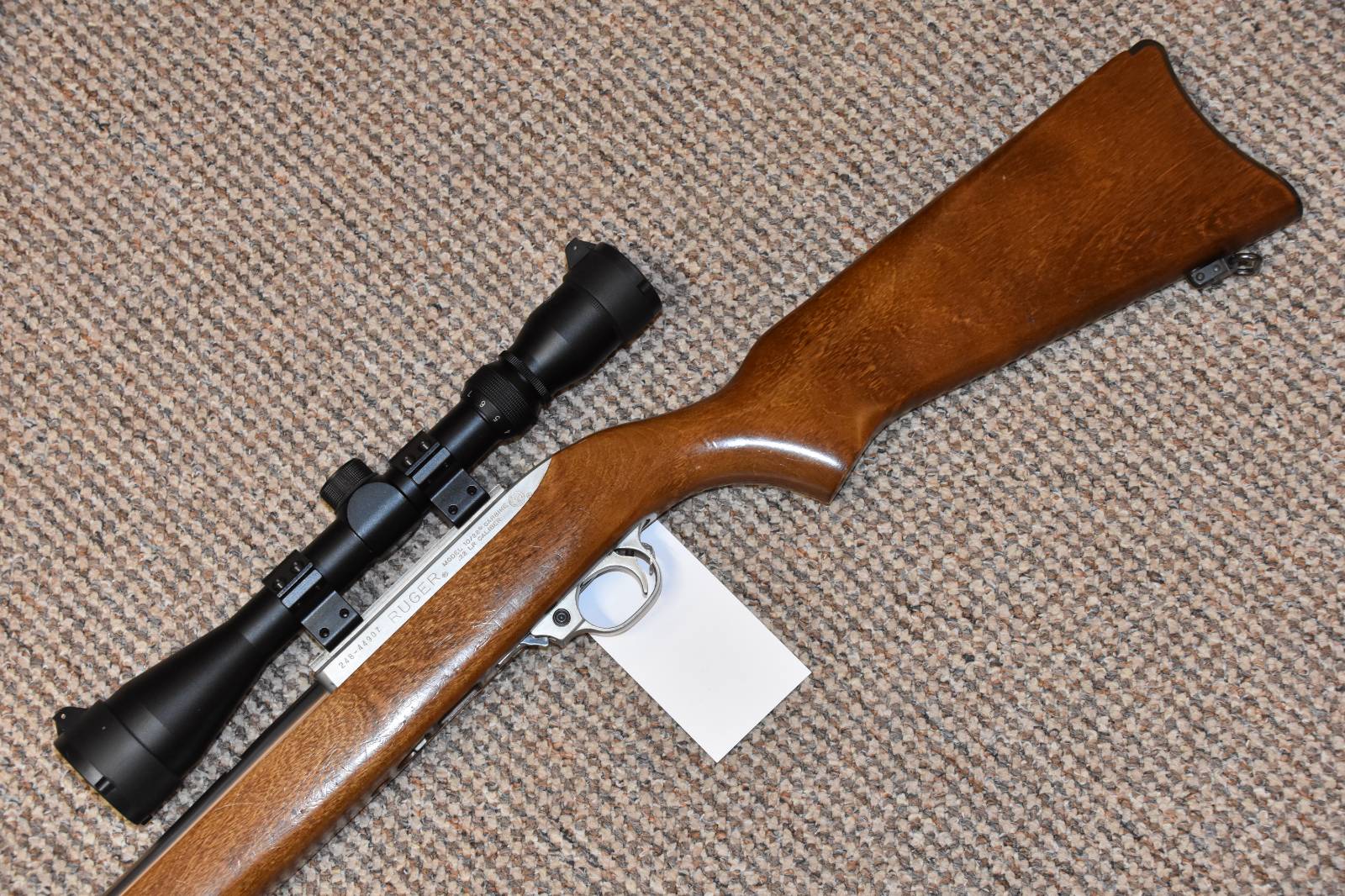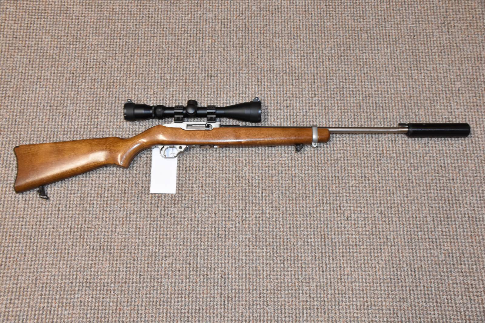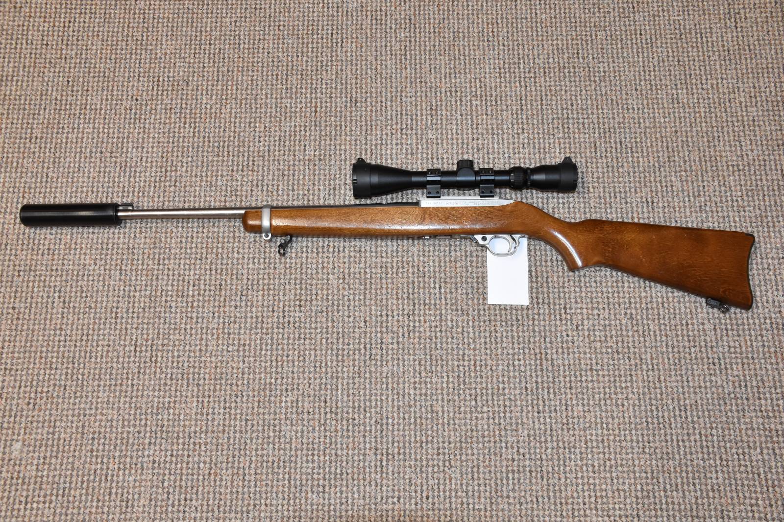 .22LR Ruger 10/22 Stainless Semi automatic rifle 19" stainless barrel Richter Optik 3-9x40 SAK Moderator 10 Round magazine 2 piece scope mounts Wooden stock Sling studs Swivels £395 including scope and moderator Finance Available