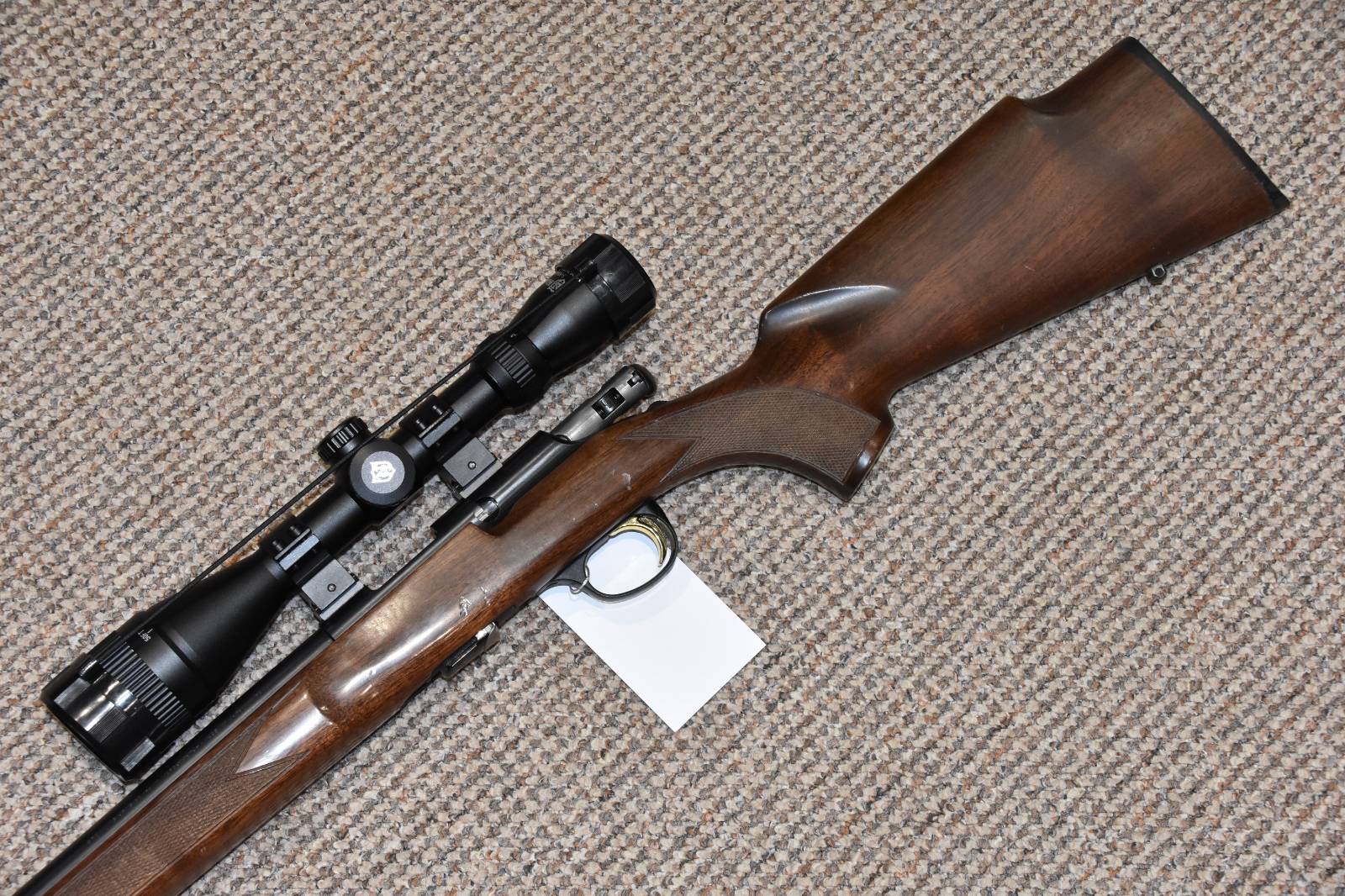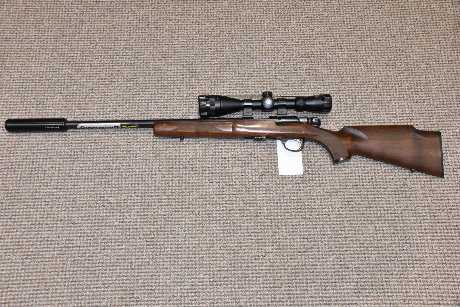 .22LR Browning T-Bolt Walnut Straight pull rifle 19" Barrel Nikkostirling Mountmaster 3-9x40 illuminated scope SAK Sound moderator 10 Round 'Double Helix' detachable magazine Walnut stock Sling studs 2 Piece scope mounts Picatinny bases £395 including scope and moderator Finance Available