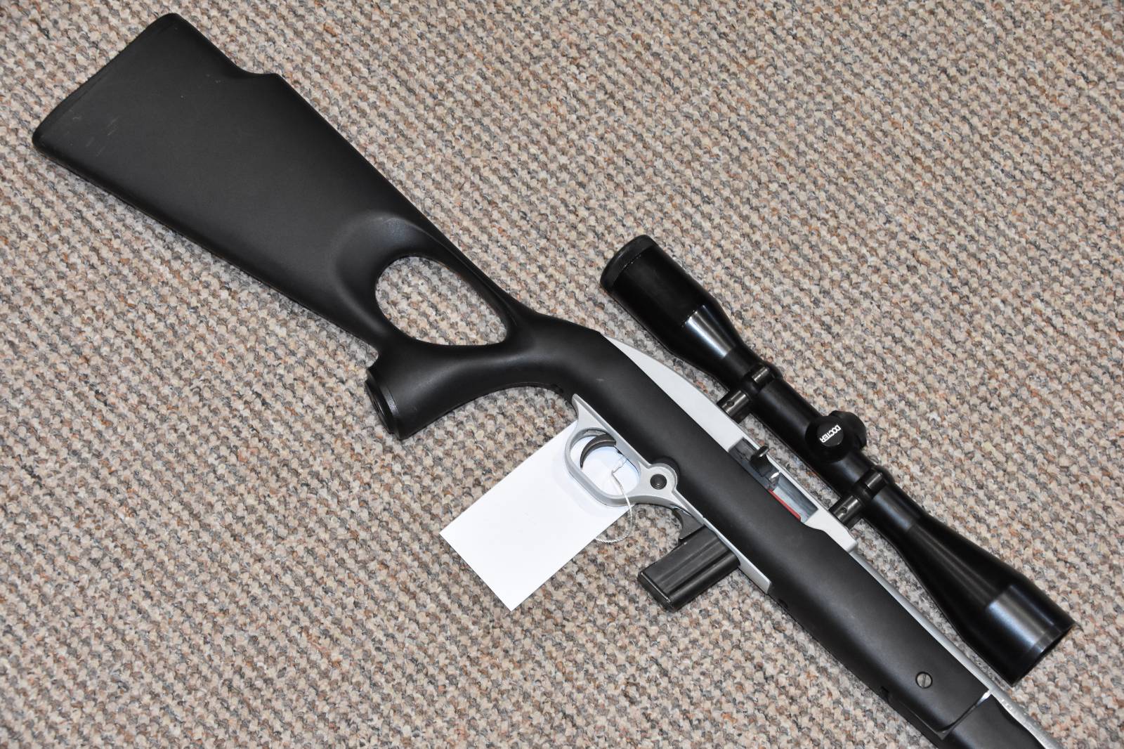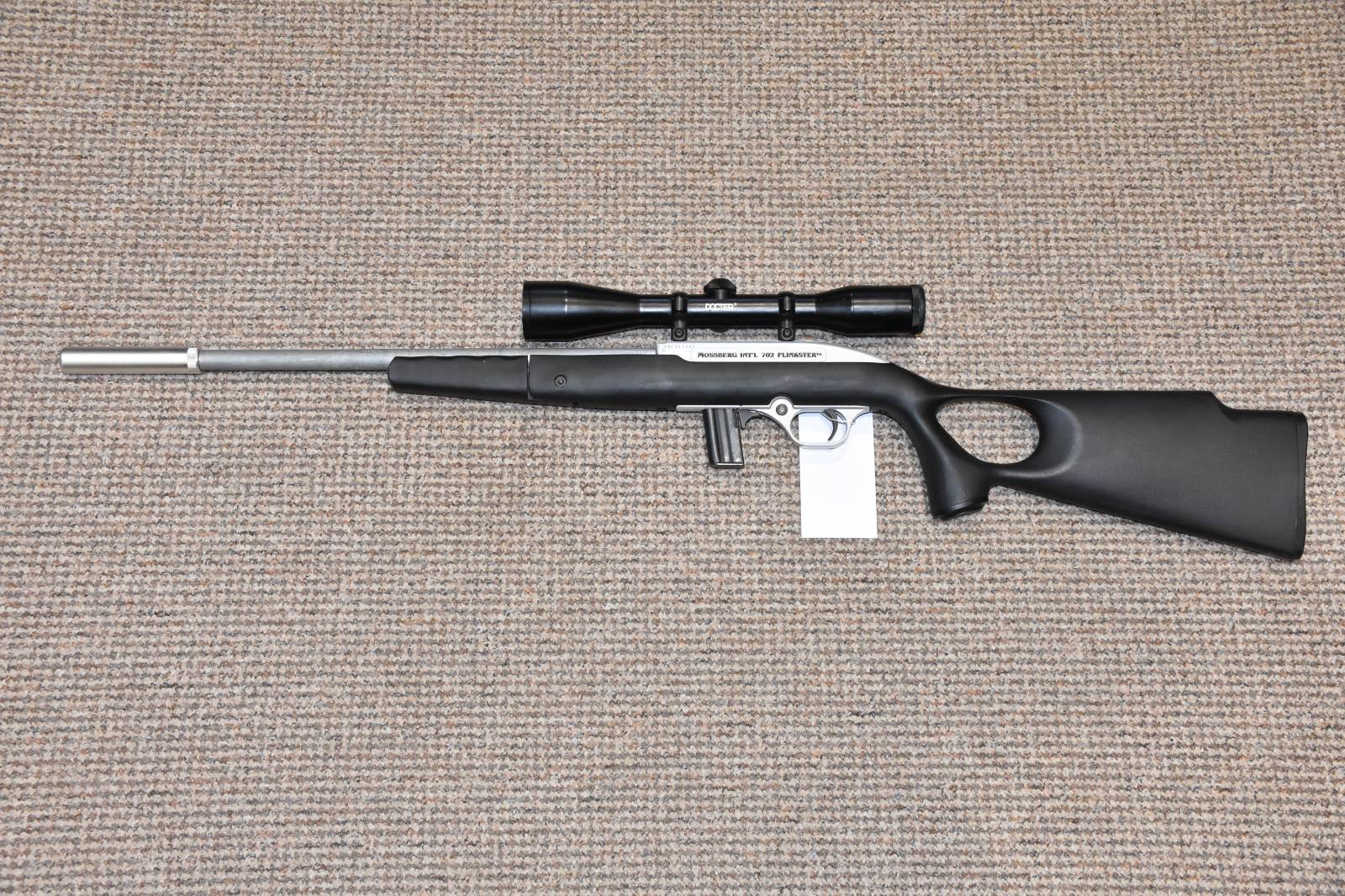 .22LR Mossberg 702 Plinkster Semi automatic rifle 16" Barrel Docter ZF 6x42 scope Sound moderator 10 Round detachable magazine Synthetic thumbhole stock Folding front fore grip 2 Piece mounts Dovetail scope rail Push button safety £195 including scope and moderator