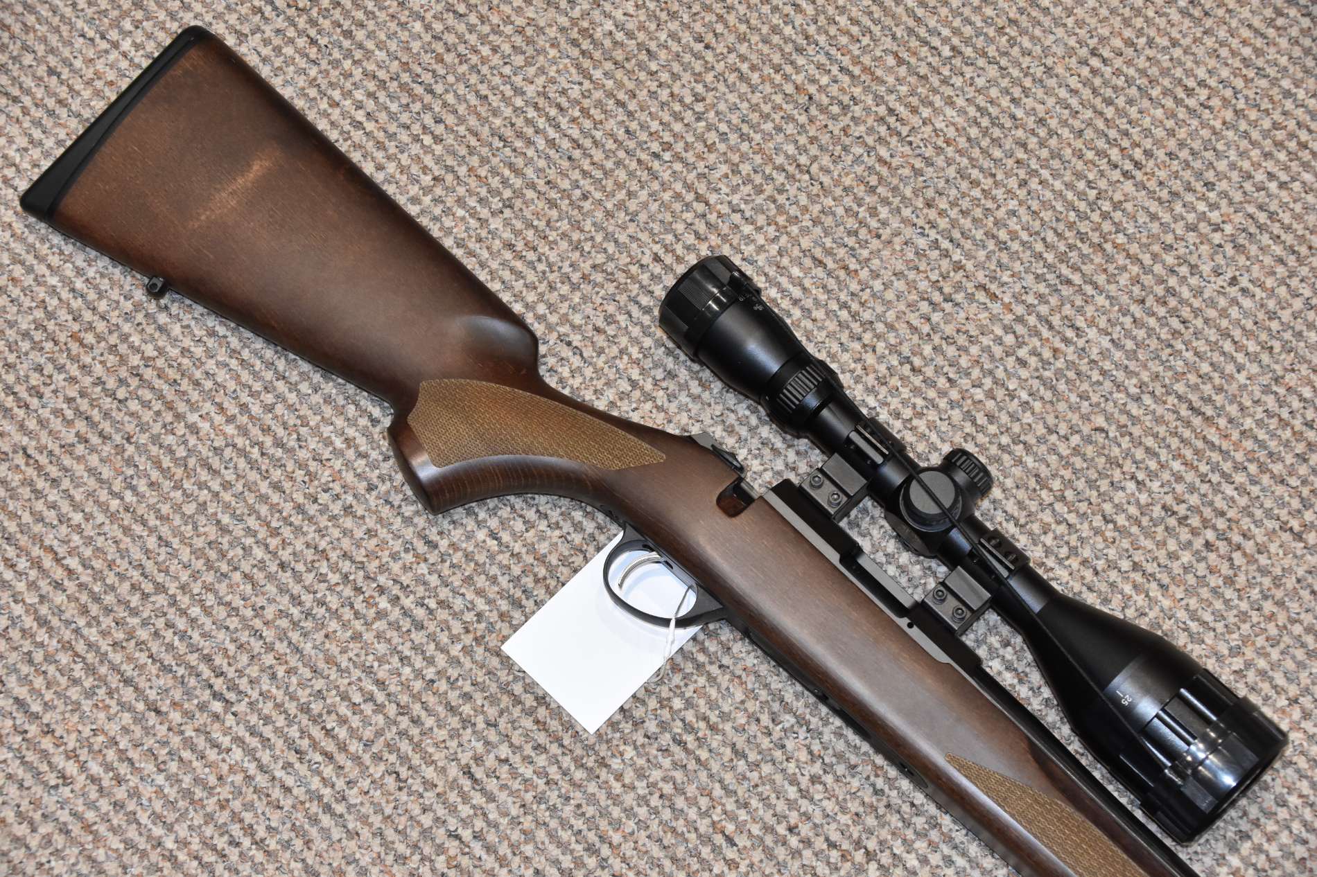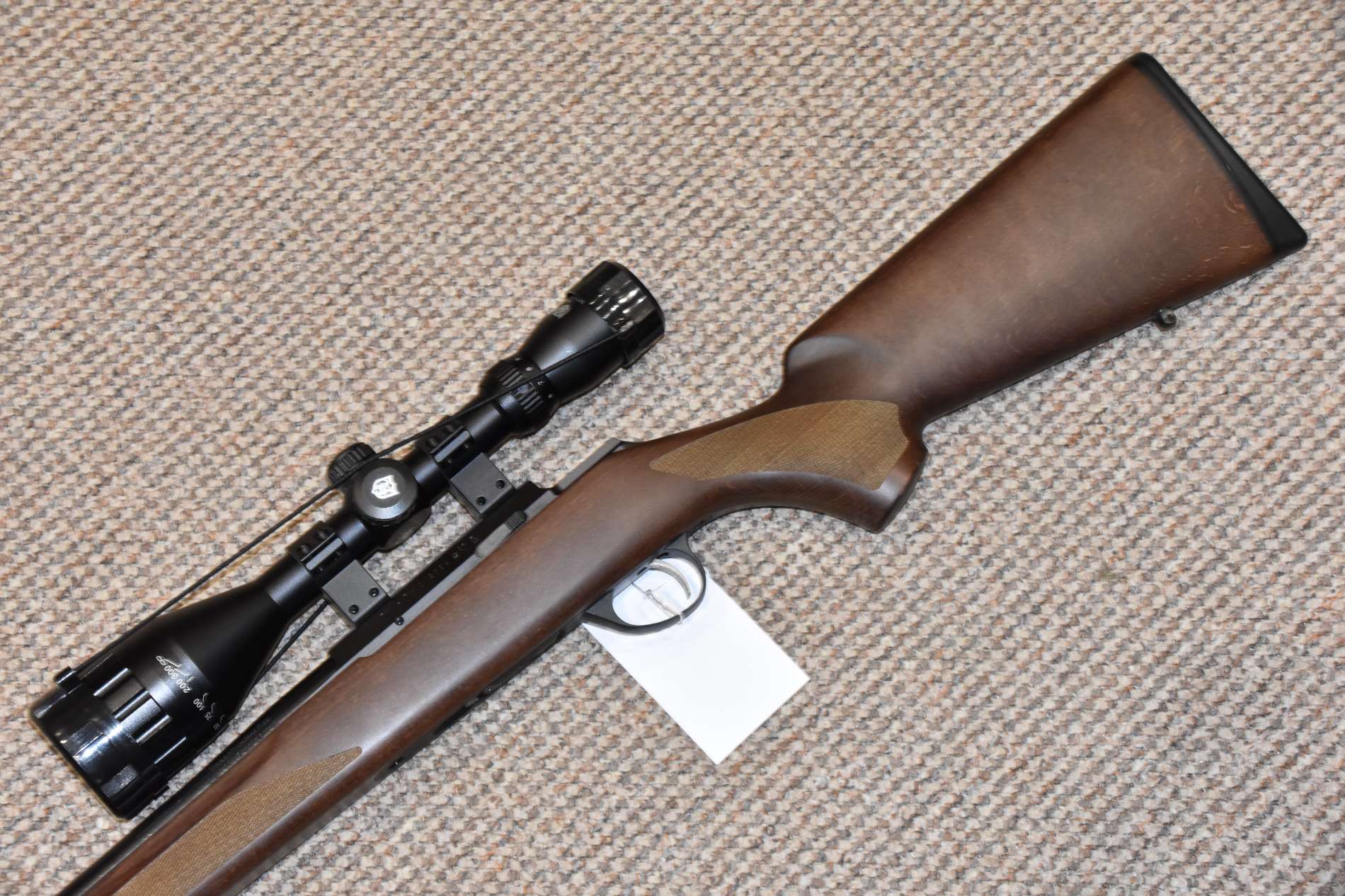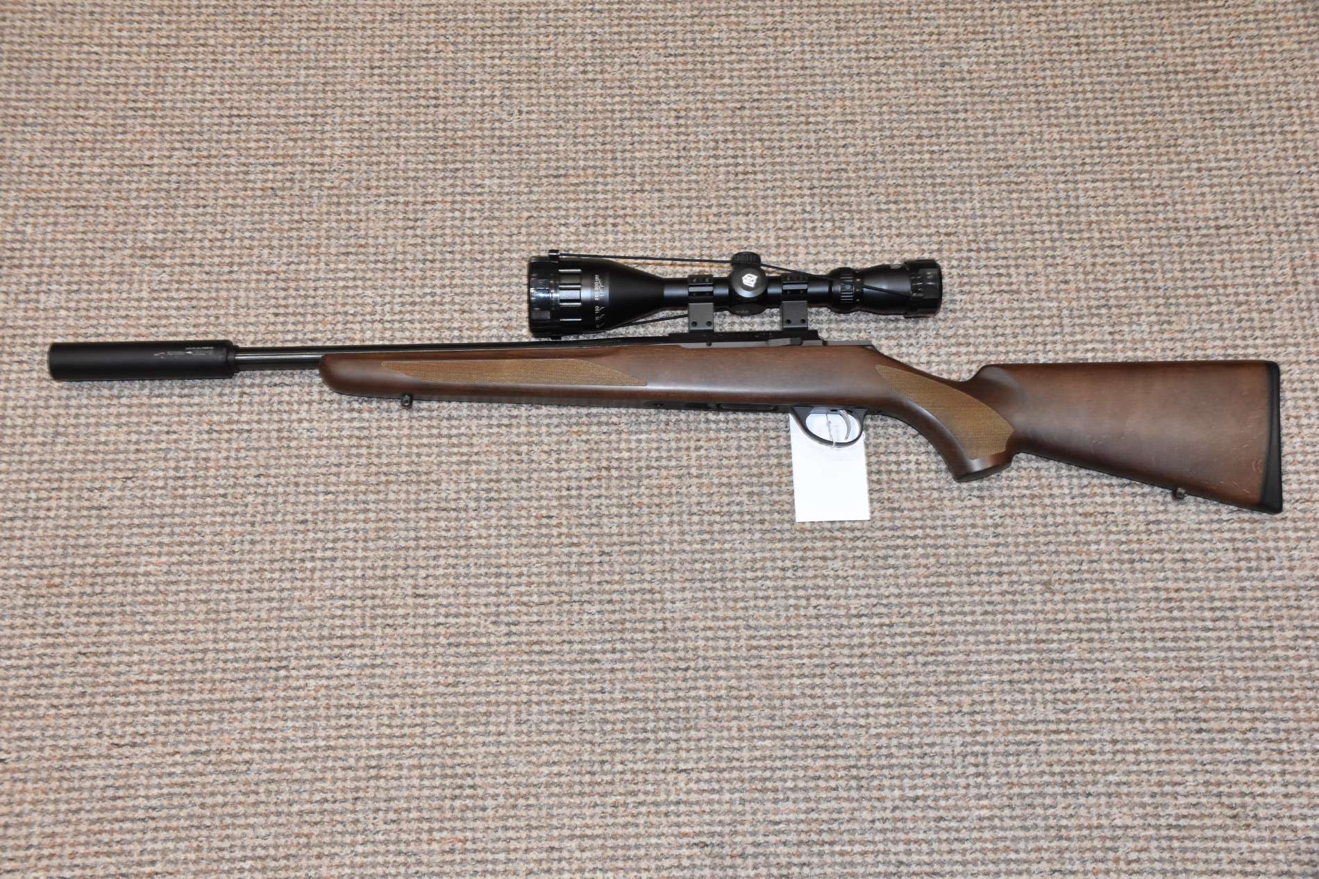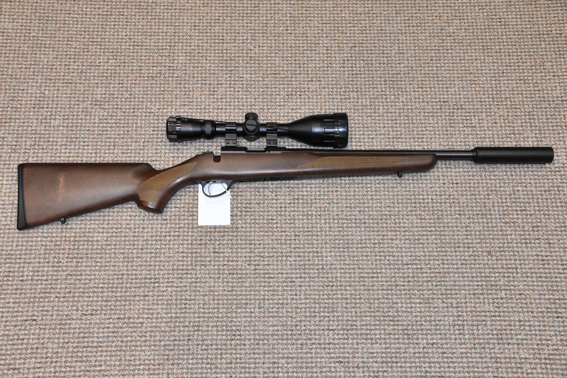 .22LR Tikka T1X Hunter Bolt action rifle 16" Barrel 5 Round detachable magazine Nikkostirling Mountmaster 4-12x50 illuminated scope A-Tec wave sound moderator 2 Piece Nikkostirling scope mounts Wooden stock Sling studs £650 including scope and moderator Finance Available