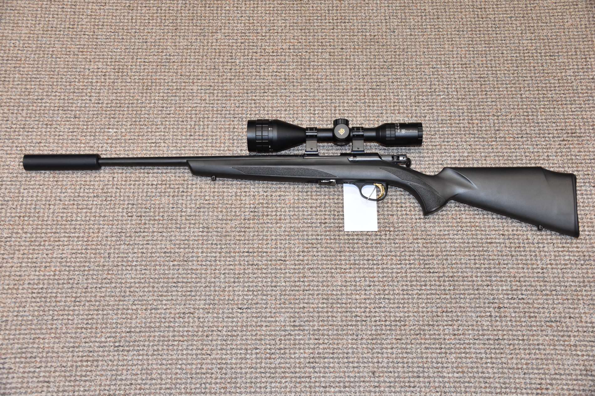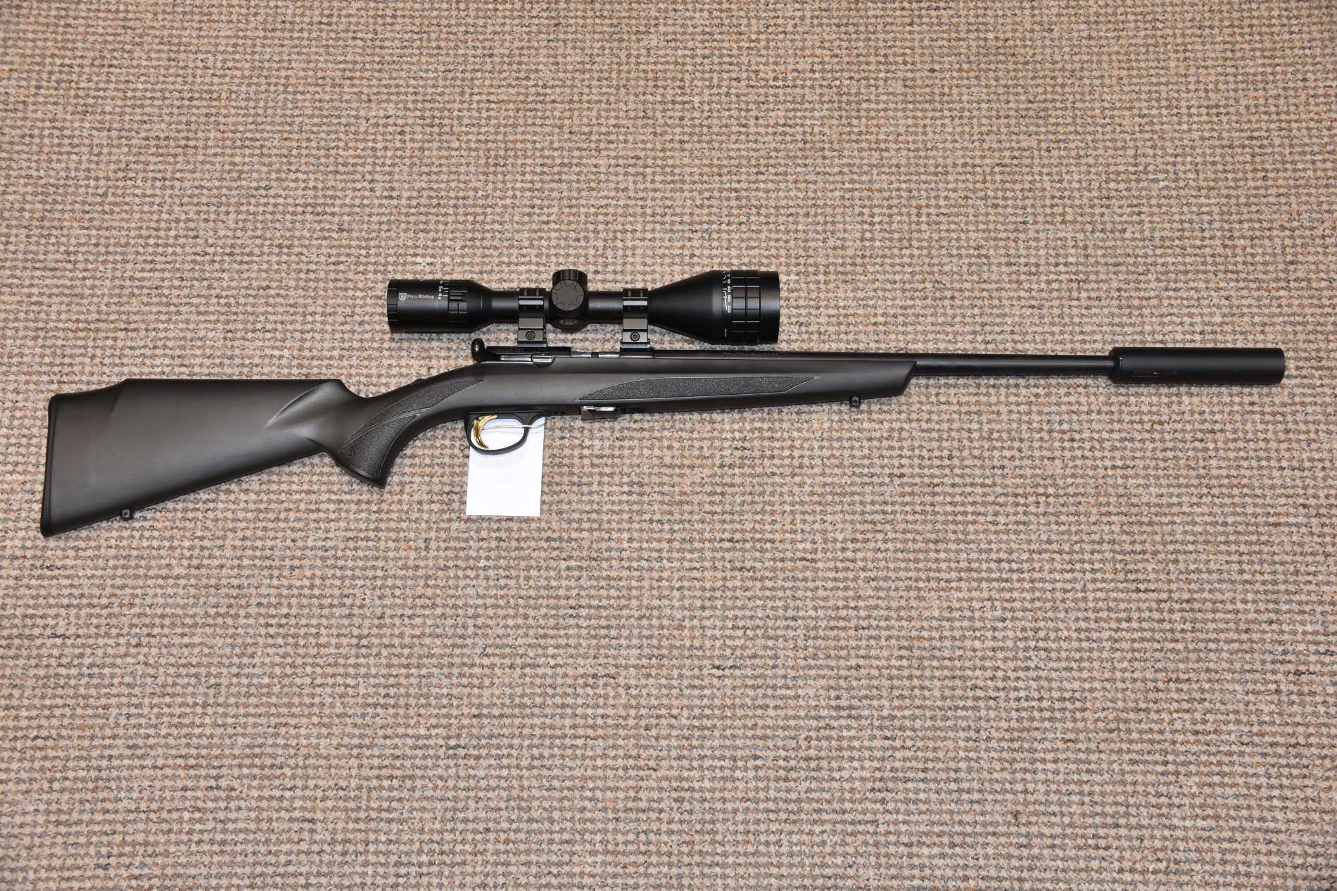 .22LR Browning T-Bolt Synthetic Straight pull rifle 16" Barrel Nikkostirling Panamax 4-12x50 illuminated scope A-TEC Wave sound moderator Synthetic stock 10 round detachable magazine Sling studs £450 including scope and moderator Finance Available
