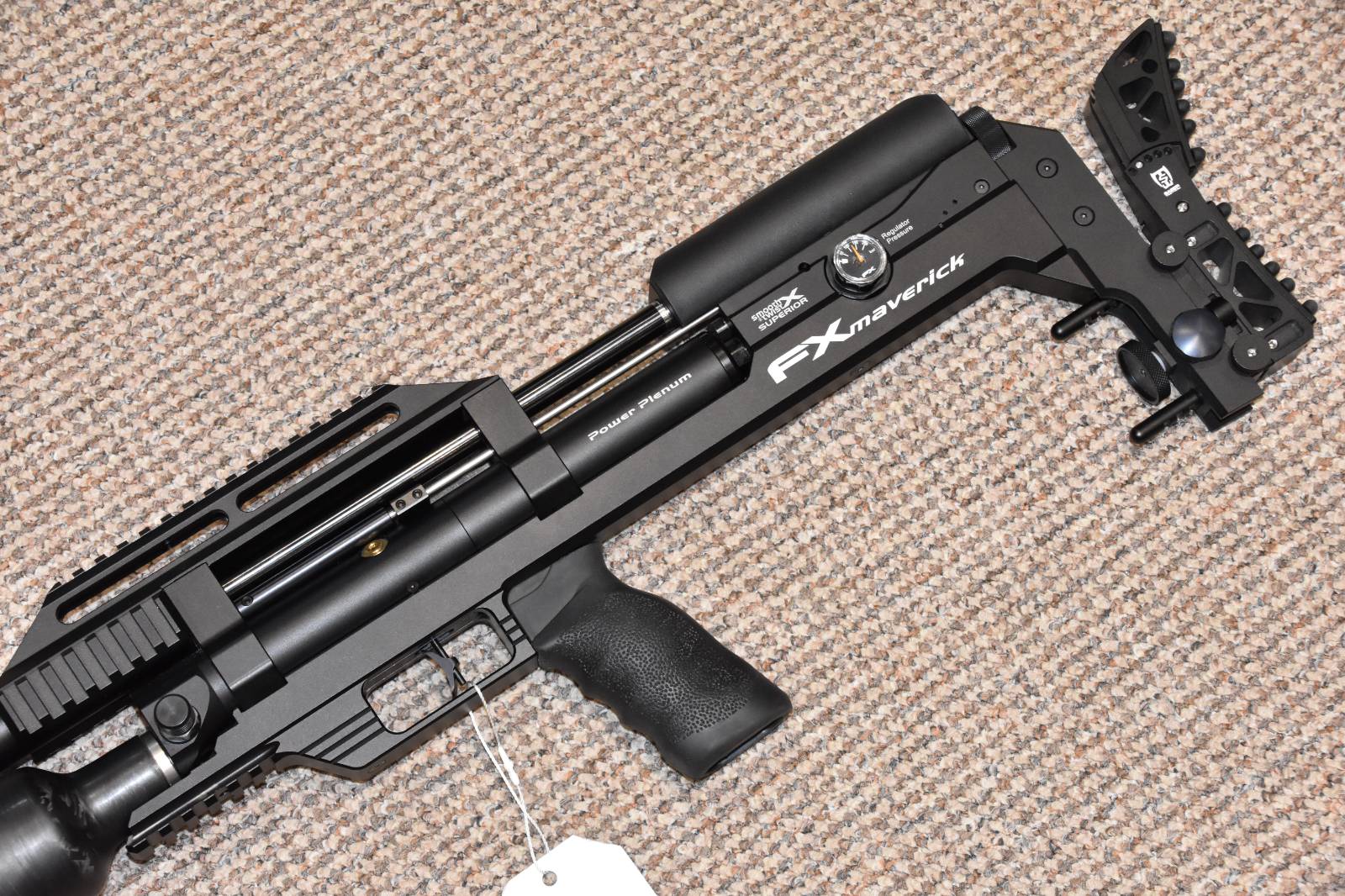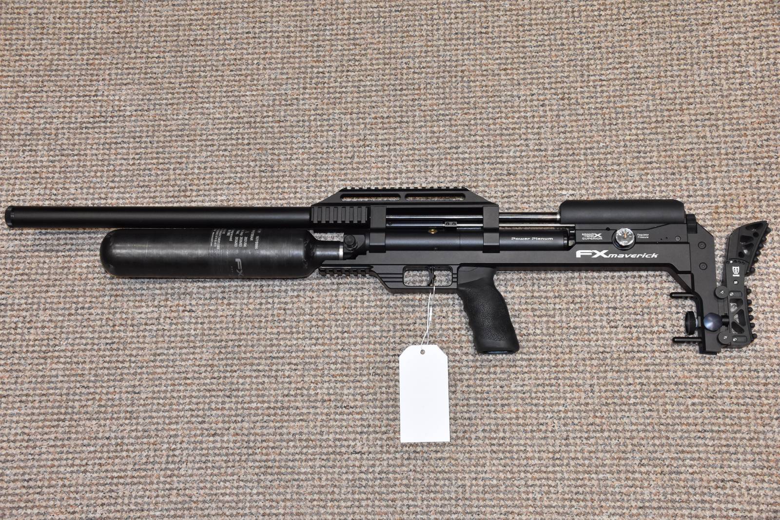 .22 FX Maverick Sniper Pre charged air rifle 700mm barrel 14 Shot detachable magazine Smooth Twist X Superior barrel Sable Tactical Adjustable butt pad Picatinny scope rail Max working pressure 250 BAR Tested at 42 ft/lbs of power Regulator pressure guage 0.85L Carbon air bottle Threaded for moderator Quick fill probe Adjustable power Side and lower picatinny accessory rails Rubber grip £995 Finance Available