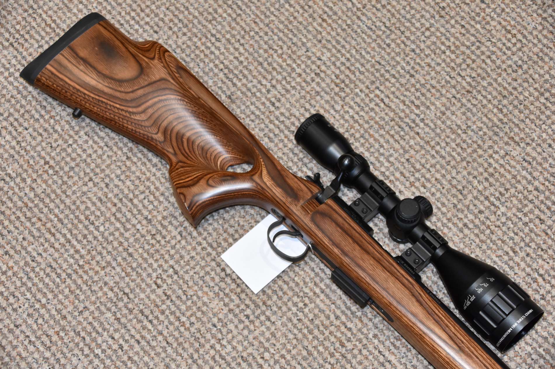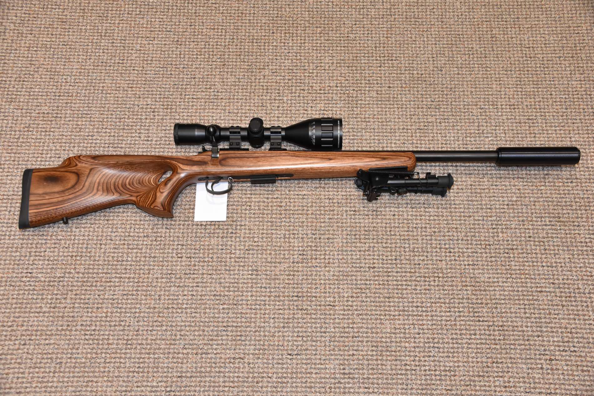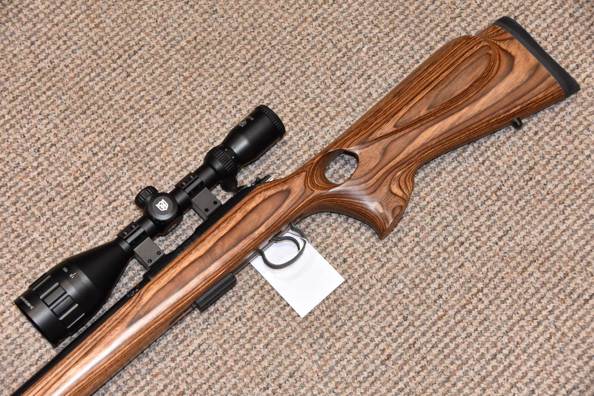 .17HMR CZ 455 Thumbhole Laminate Bolt action rifle 16" Varmint barrel 5 Round detachable magazine Nikkostirling Mountmaster 3-9x50 illuminated scope SAK Sound moderator Thumbhole laminate stock Nikkostirling adjustable bipod Sling studs £450 including scope and moderator Finance Available