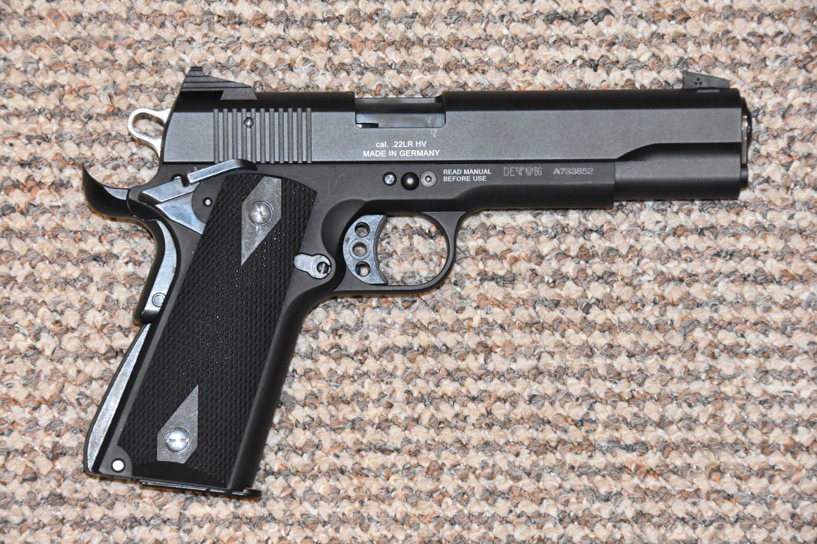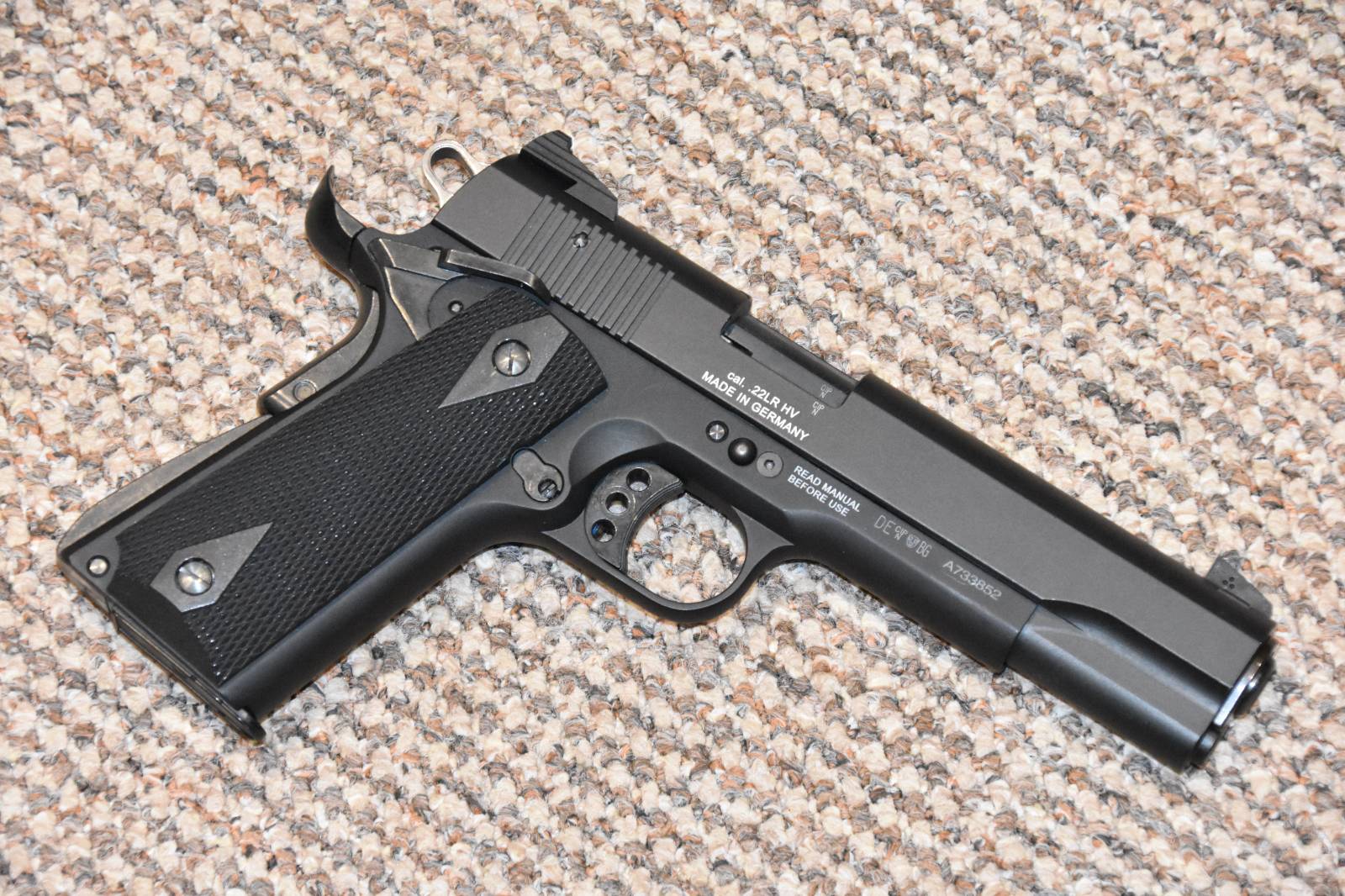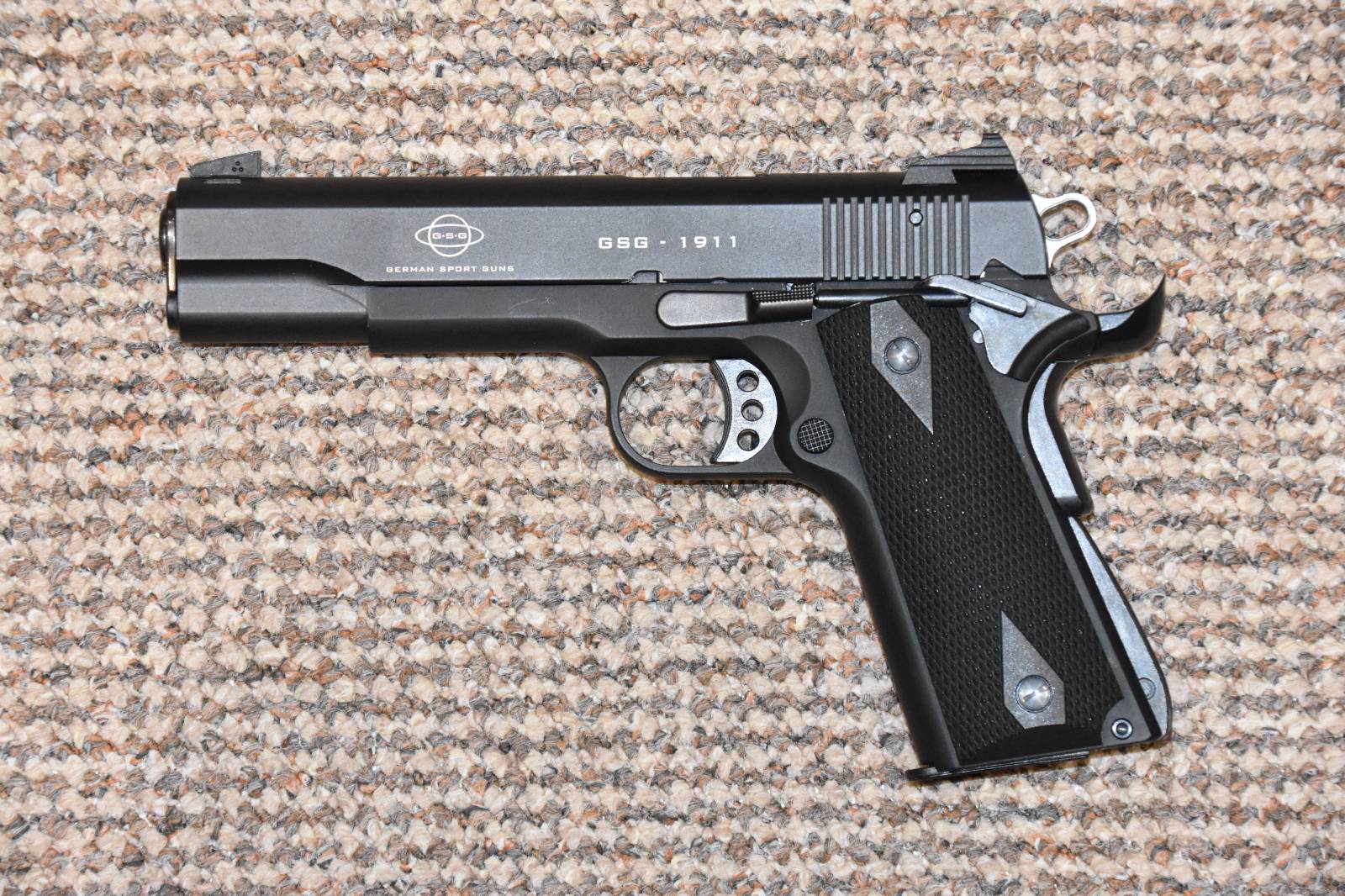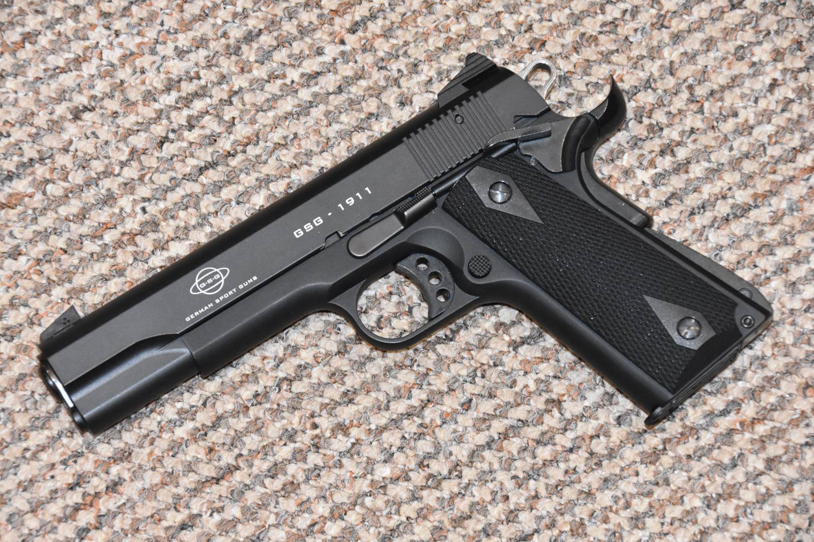 .22LR GSG 1911 Semi automatic pistol 5" Barrel 2 x 10 Round detachable magazines Beaver tail safety Skeletonized trigger Synthetic grips £295 Comes in GSG hard carry case Finance Available