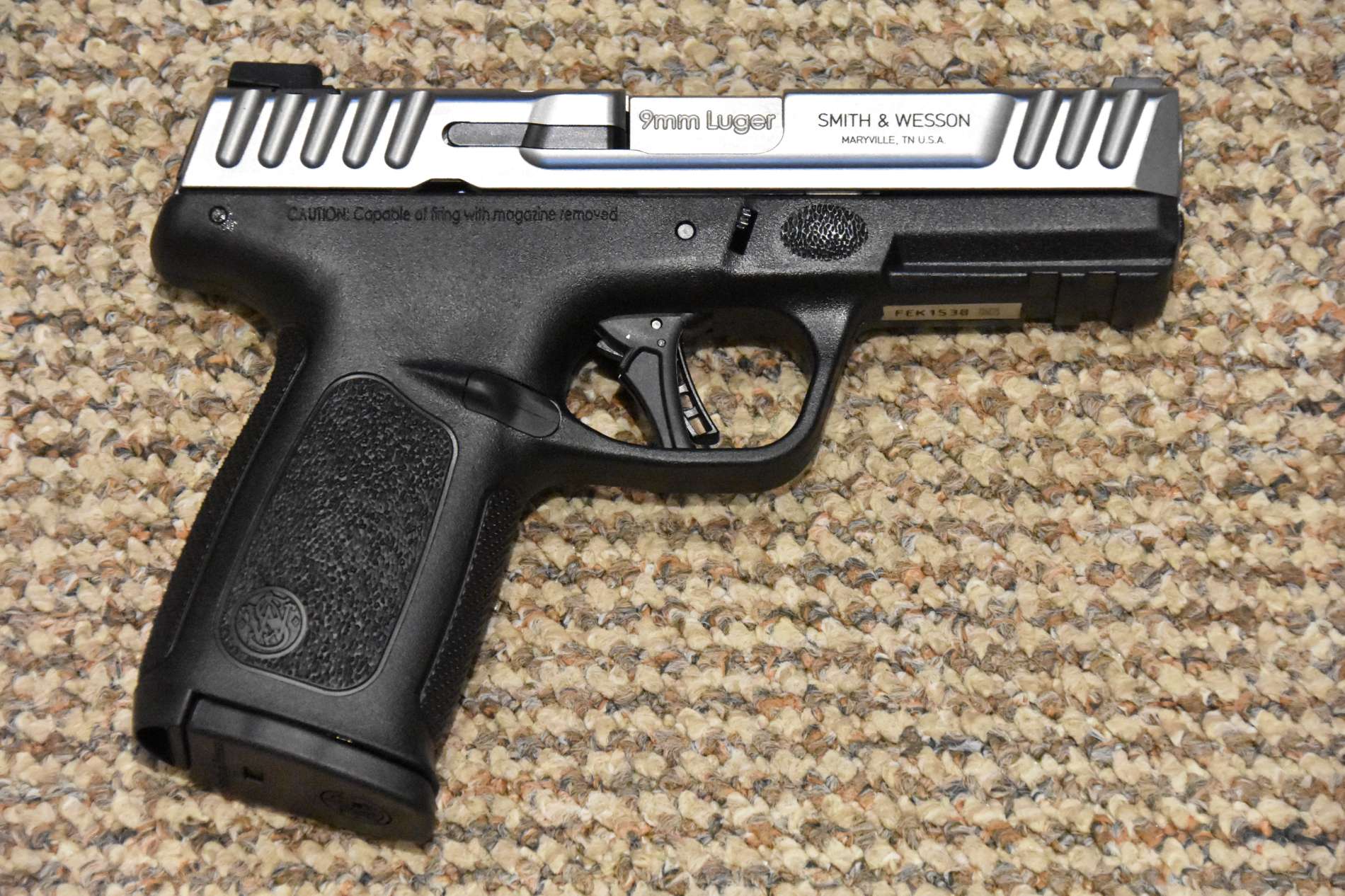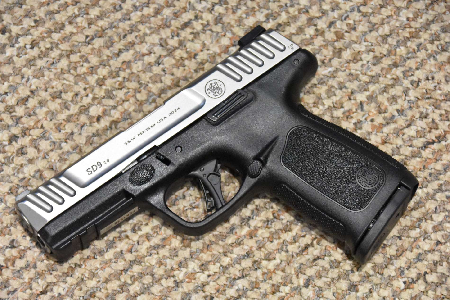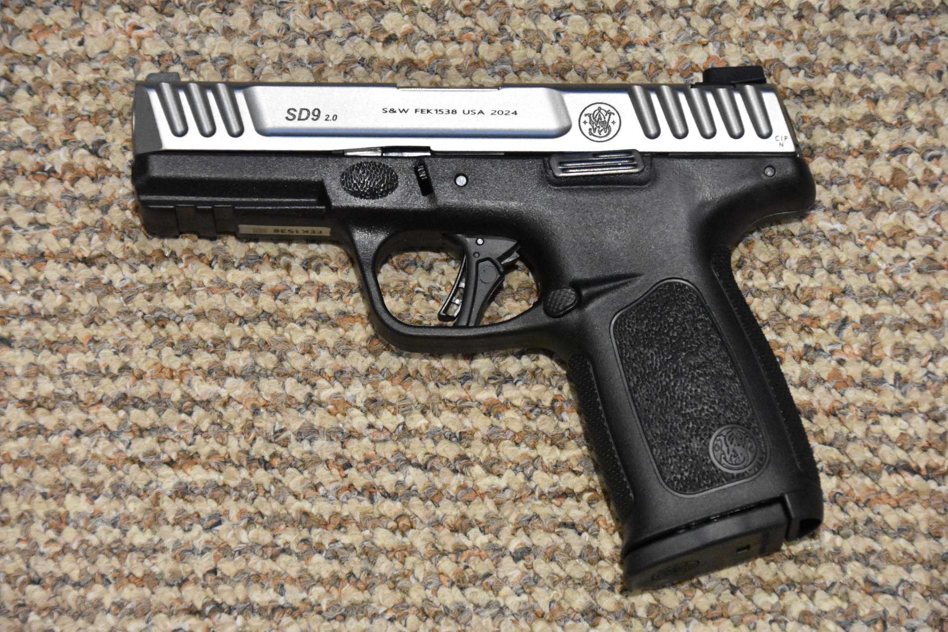 9mm Smith & Wesson SD9 2.0 Two Tone Semi automatic pistol 4" Barrel Polymer Frame Stainless Slide Slide serrations 3-Dot iron sights Flat face trigger with integrated safety 16 Round detachable magazine Brand New £595 Finance Available