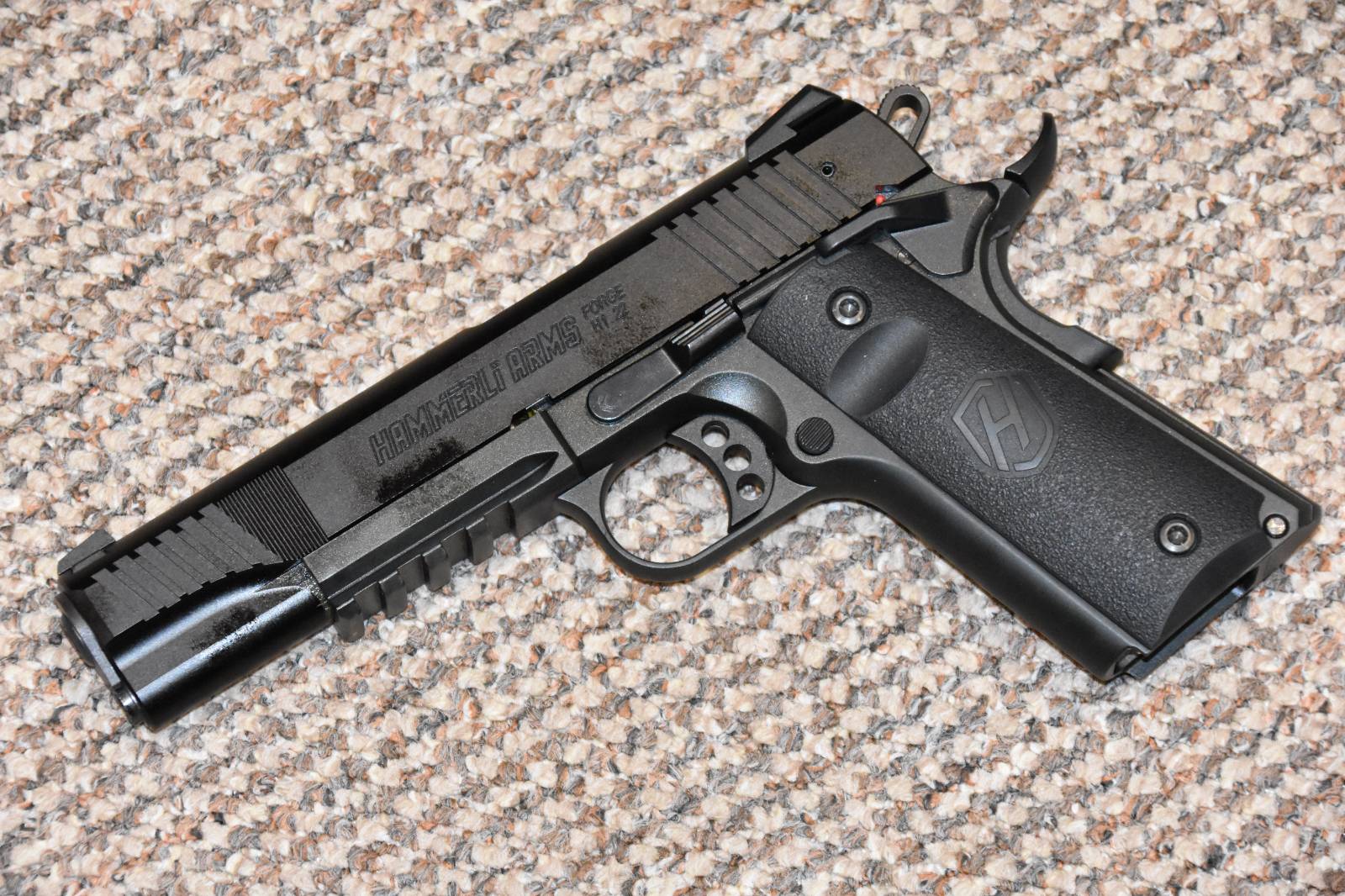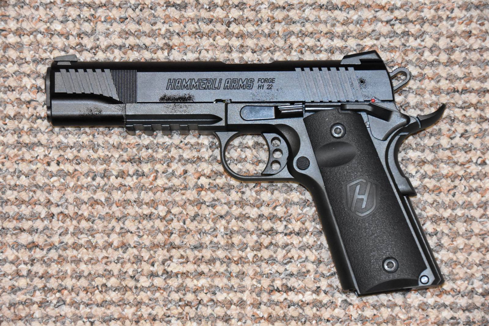 .22LR Hammerli Forge H1 Semi automatic pistol 5" Barrel Beaver tail safety grip Lower picatinny accessory rail Serrated slide Synthetic grips 2 x 12 Round detachable magazines Comes in hard carry case £295 Finance Available