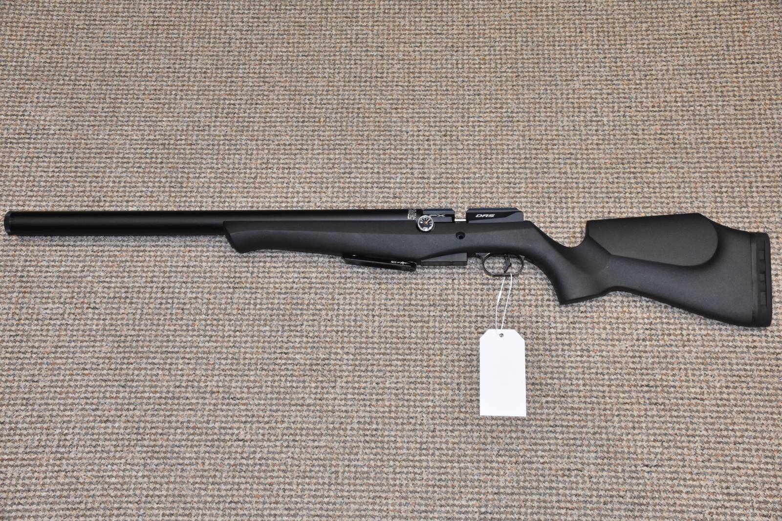 .22 FX DRS Synthetic Pre charged air rifle 600mm barrel 14 shot detachable magazine Threaded for moderator Wrap around air tank Synthetic stock Rubber butt pad Black Rifle ARCA base plate Max working pressure 230 BAR Tested at 32 ft/lbs of power Dovetail scope rail £595 Finance Available